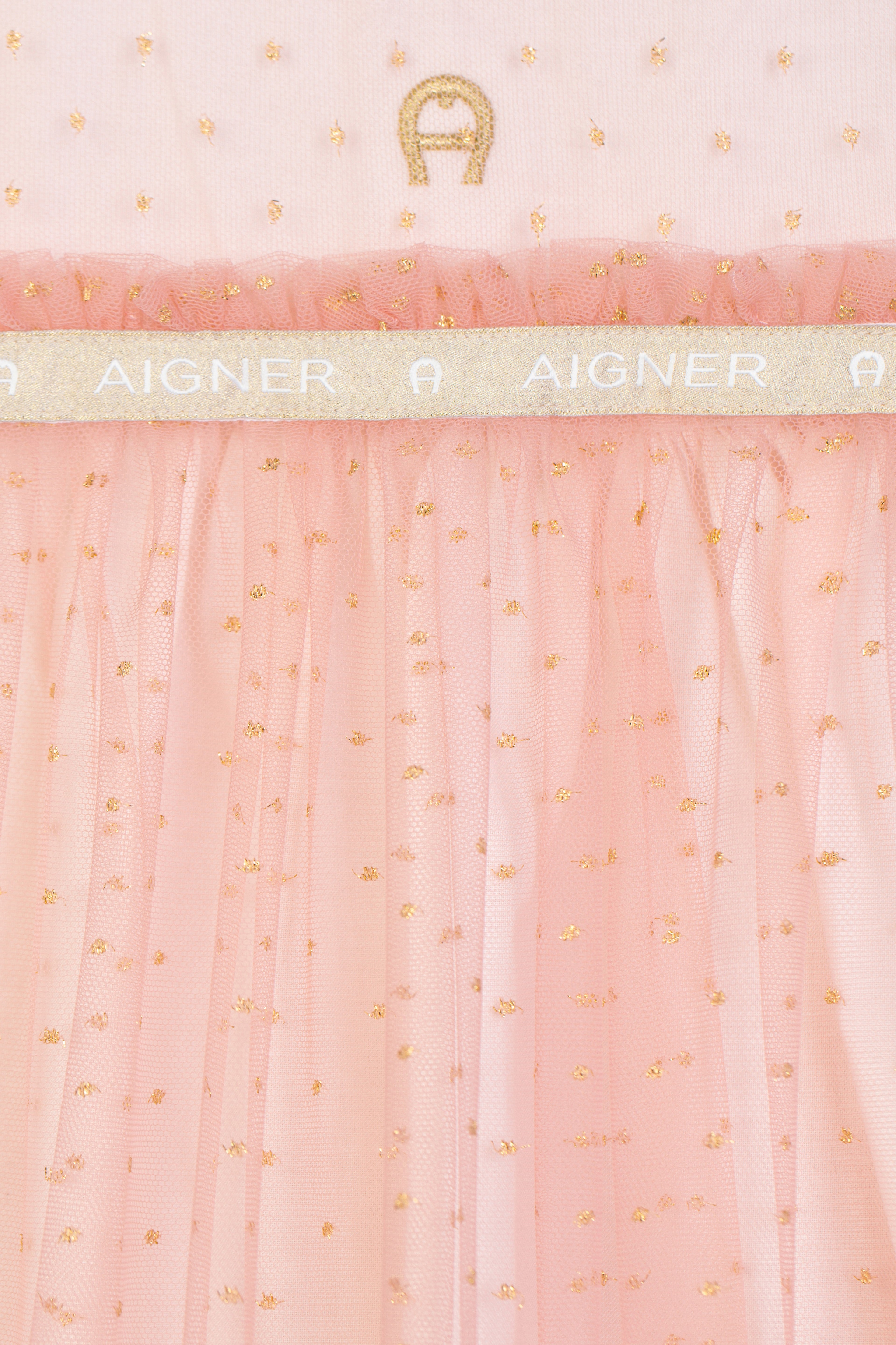 Aigner Kids Girl's Pink Tulle Dress with Gold Polka Dots