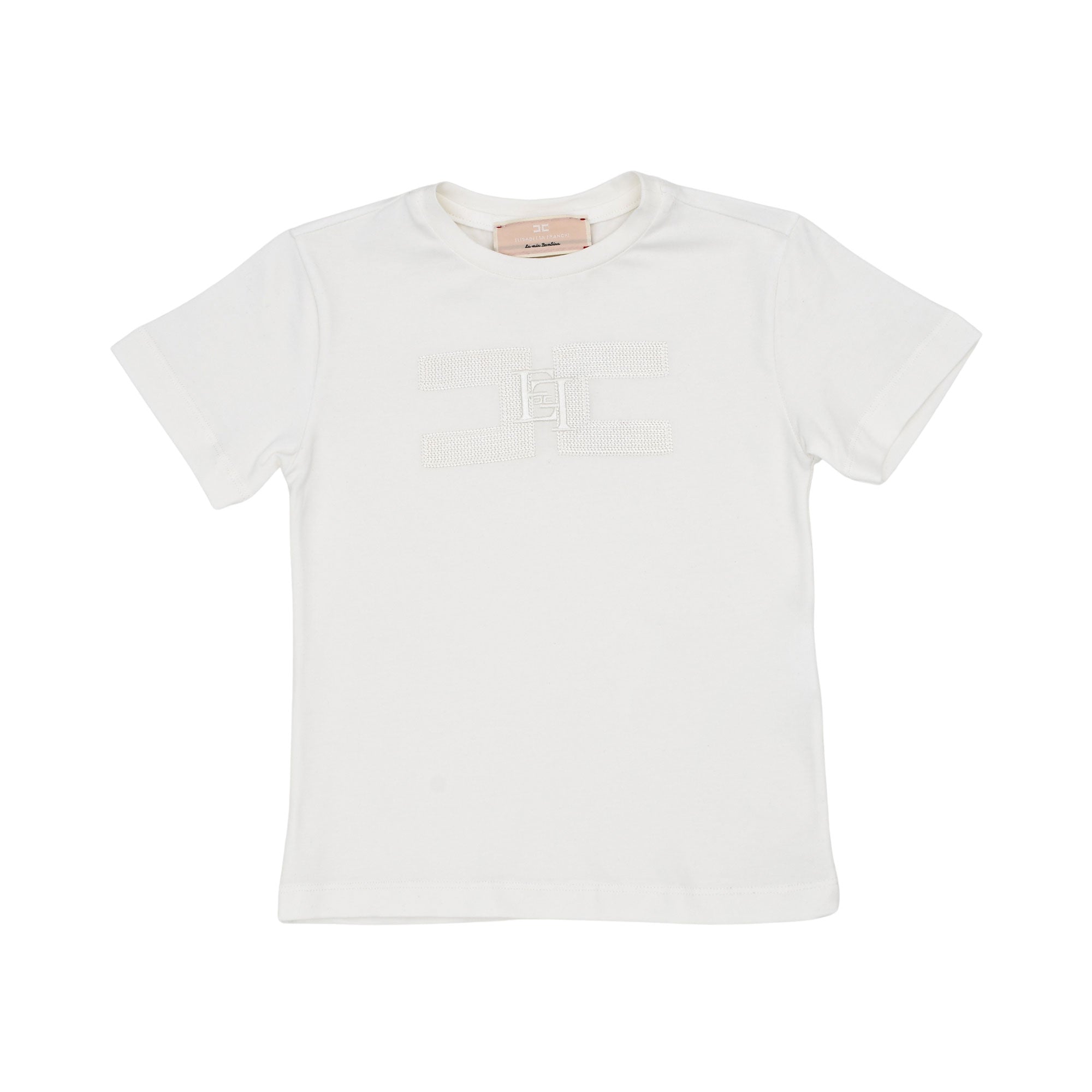 • Large, stylized Elisabetta Franchi square logo on the chest