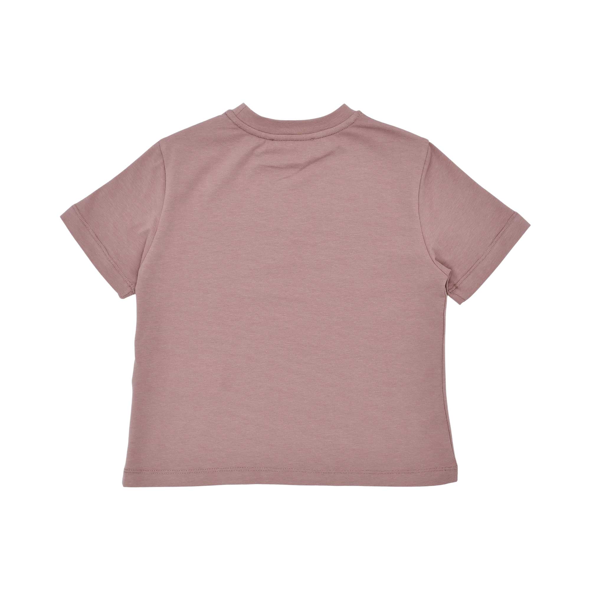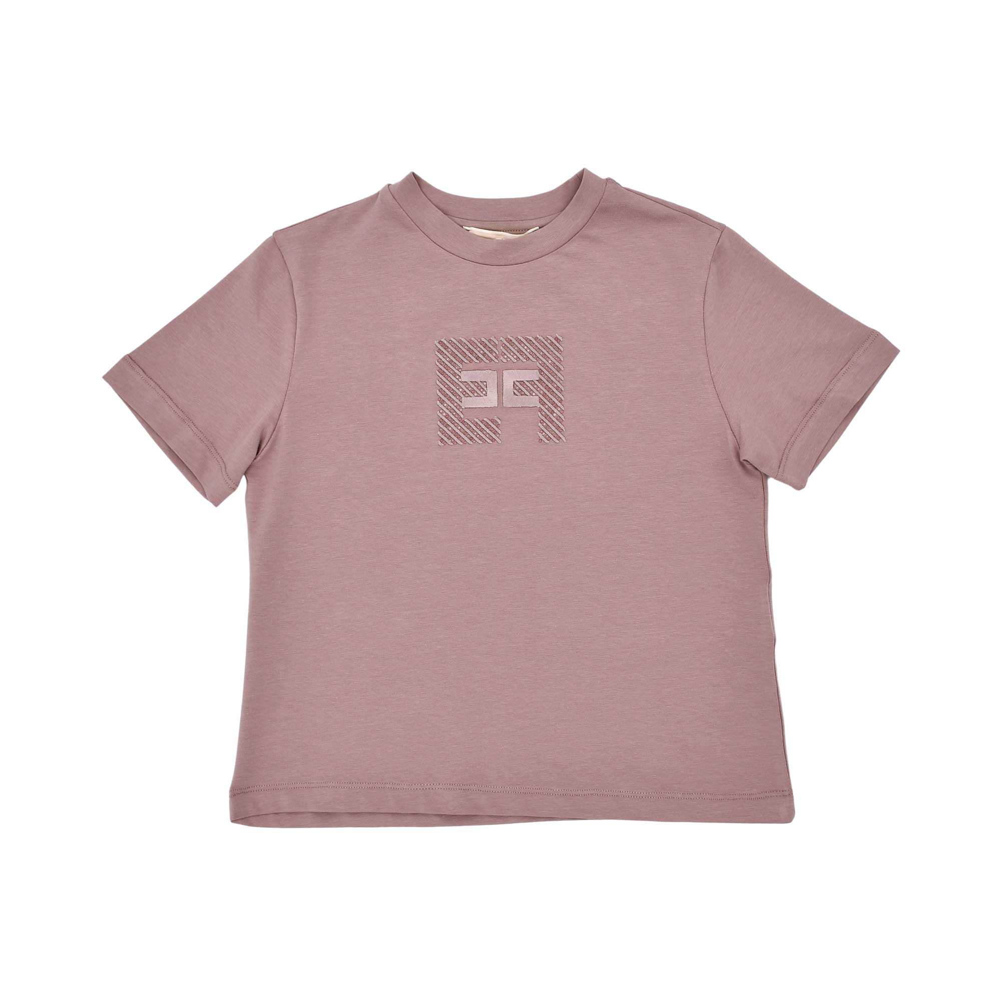 The Elisabetta Franchi Kids Girl's Tonal Logo T-Shirt is a stylish and contemporary piece designed with comfort and subtle branding in mind. It features a classic crew neck and short sleeves, making it a versatile addition to any child's wardrobe. The fit is standard or slightly boxy, providing a relaxed and comfortable silhouette suitable for everyday wear. The standout detail of the shirt is the large, stylized Elisabetta Franchi square logo prominently displayed on the chest. This logo is uniquely crafted using tonal, thin horizontal stripes or lettering, which creates a textured and understated effect that blends harmoniously with the shirt’s base color. This tonal design adds a sophisticated touch, allowing the logo to make a statement without overwhelming the overall look.