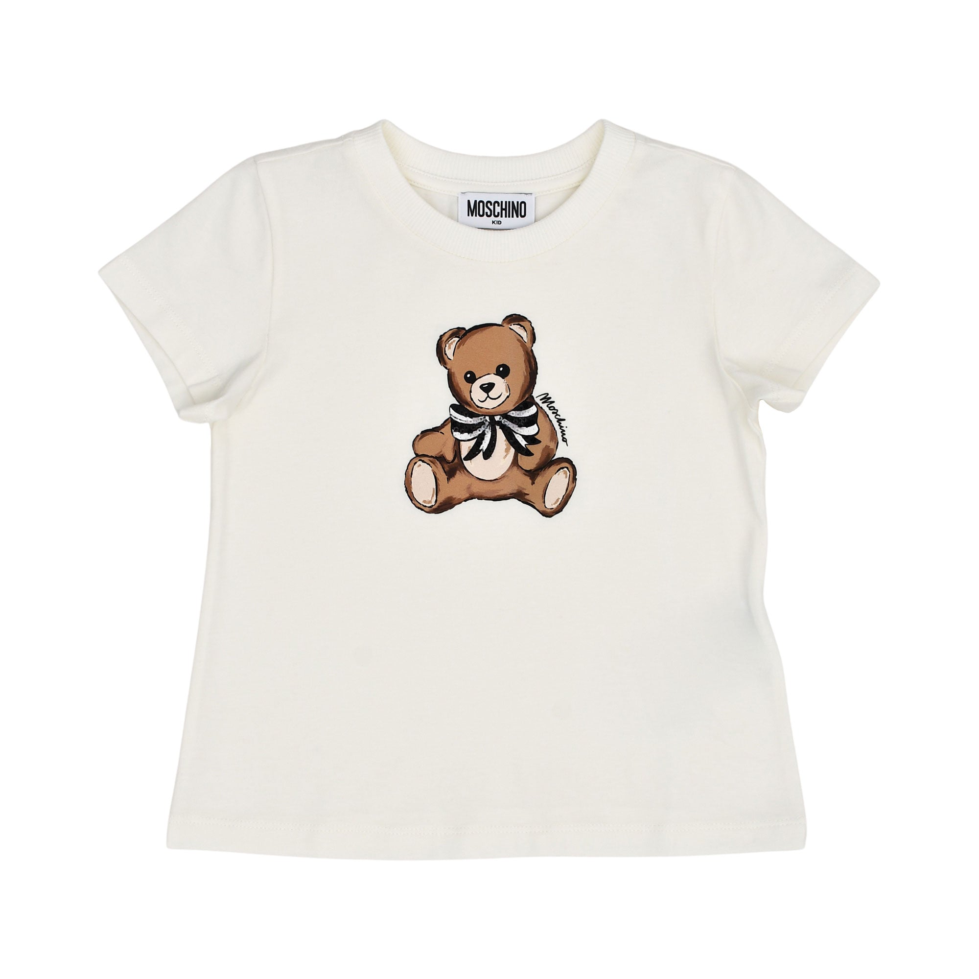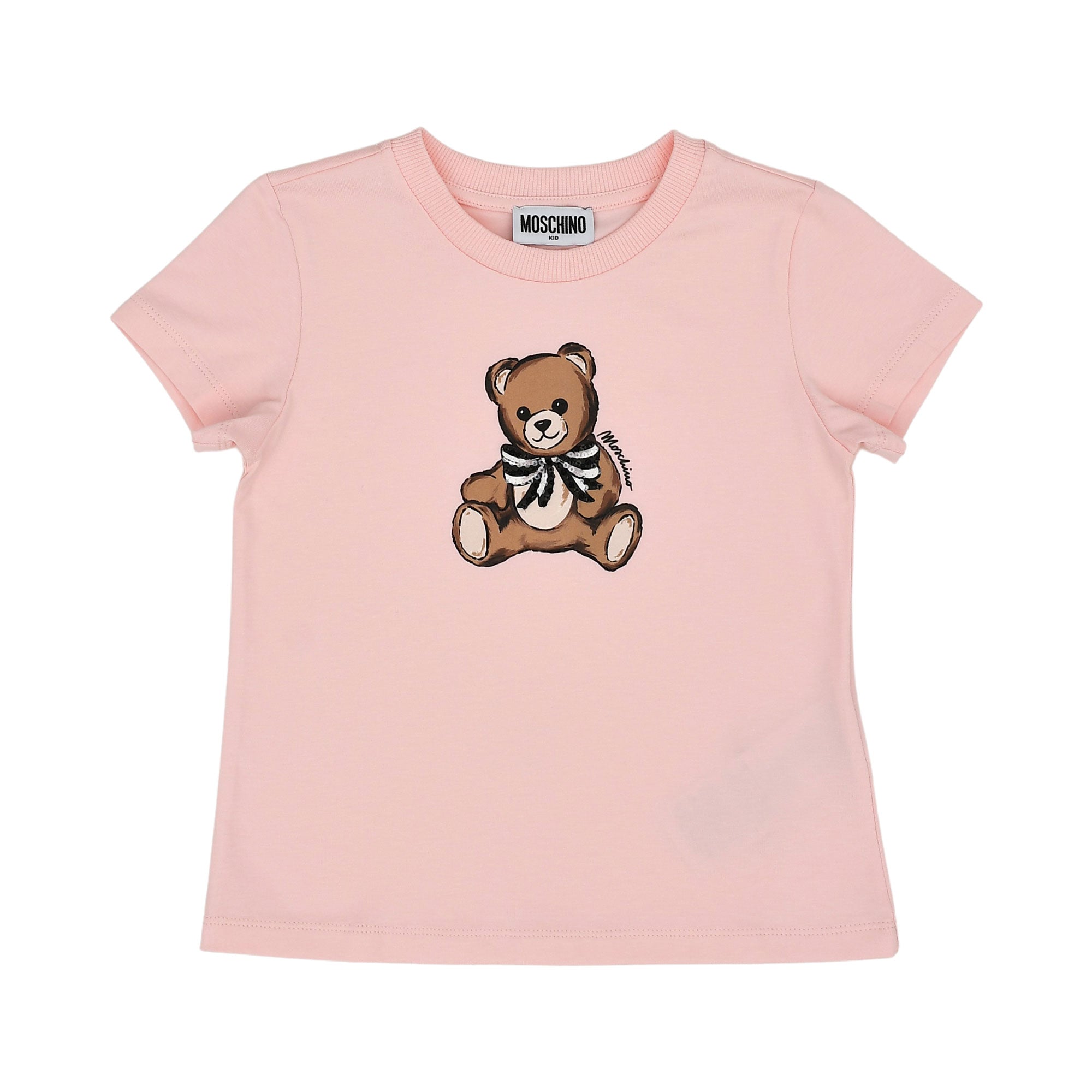 The Moschino Kids Girl's T-shirt is a stylish and playful piece from the renowned Italian luxury designer Moschino, perfect for young fashion enthusiasts. Crafted from soft, high-quality cotton jersey, this T-shirt offers both comfort and durability for everyday wear. The front is adorned with the brand’s iconic teddy bear, beautifully detailed with embellished sequins and a bold logo print, adding a touch of shimmer and branded flair. Thoughtful design features such as a ribbed crew neckline and short sleeves ensure a comfortable fit and ease of movement, making it an ideal choice for any casual or special occasion. With its blend of luxury style and practical comfort, this Moschino T-shirt is a standout addition to any girl’s wardrobe.