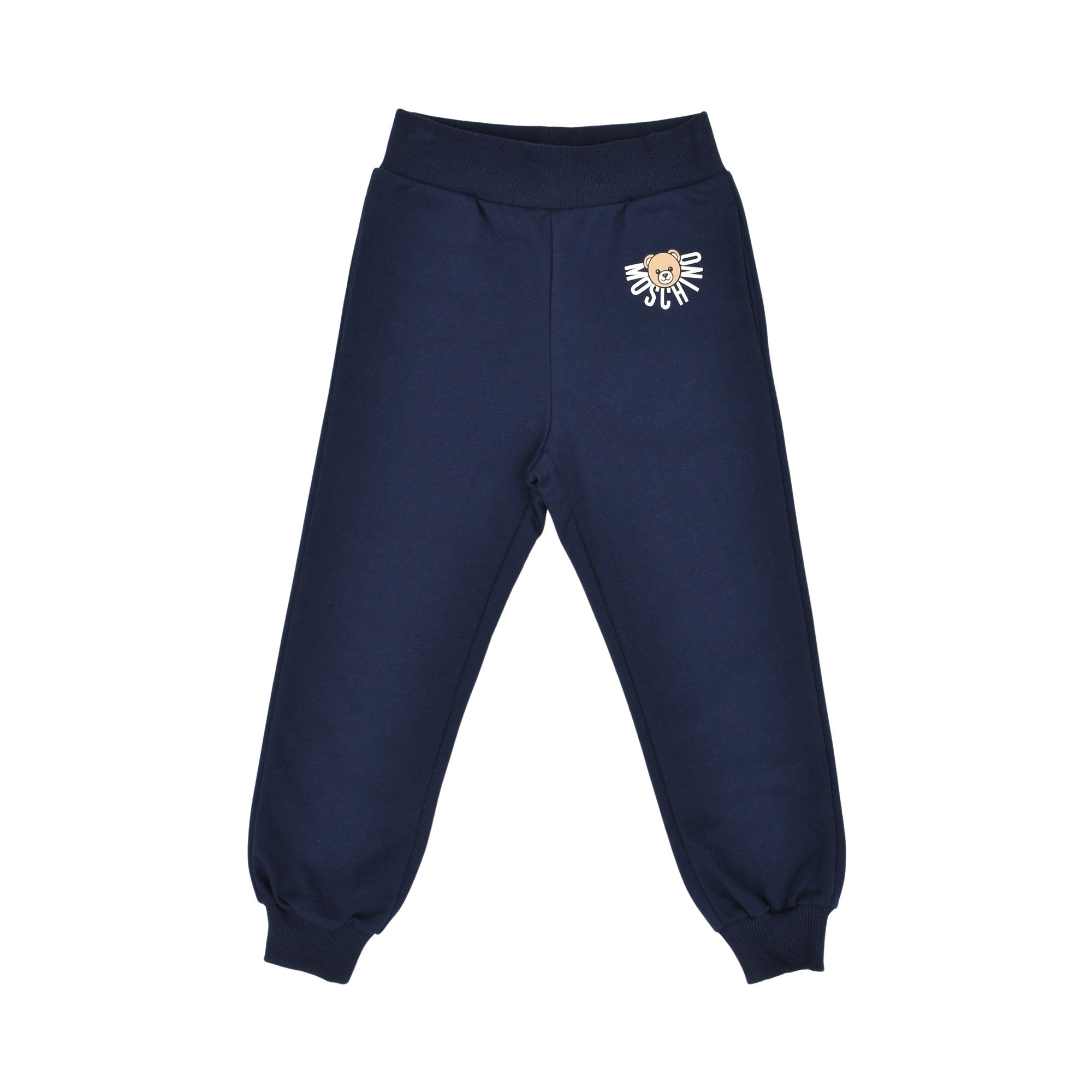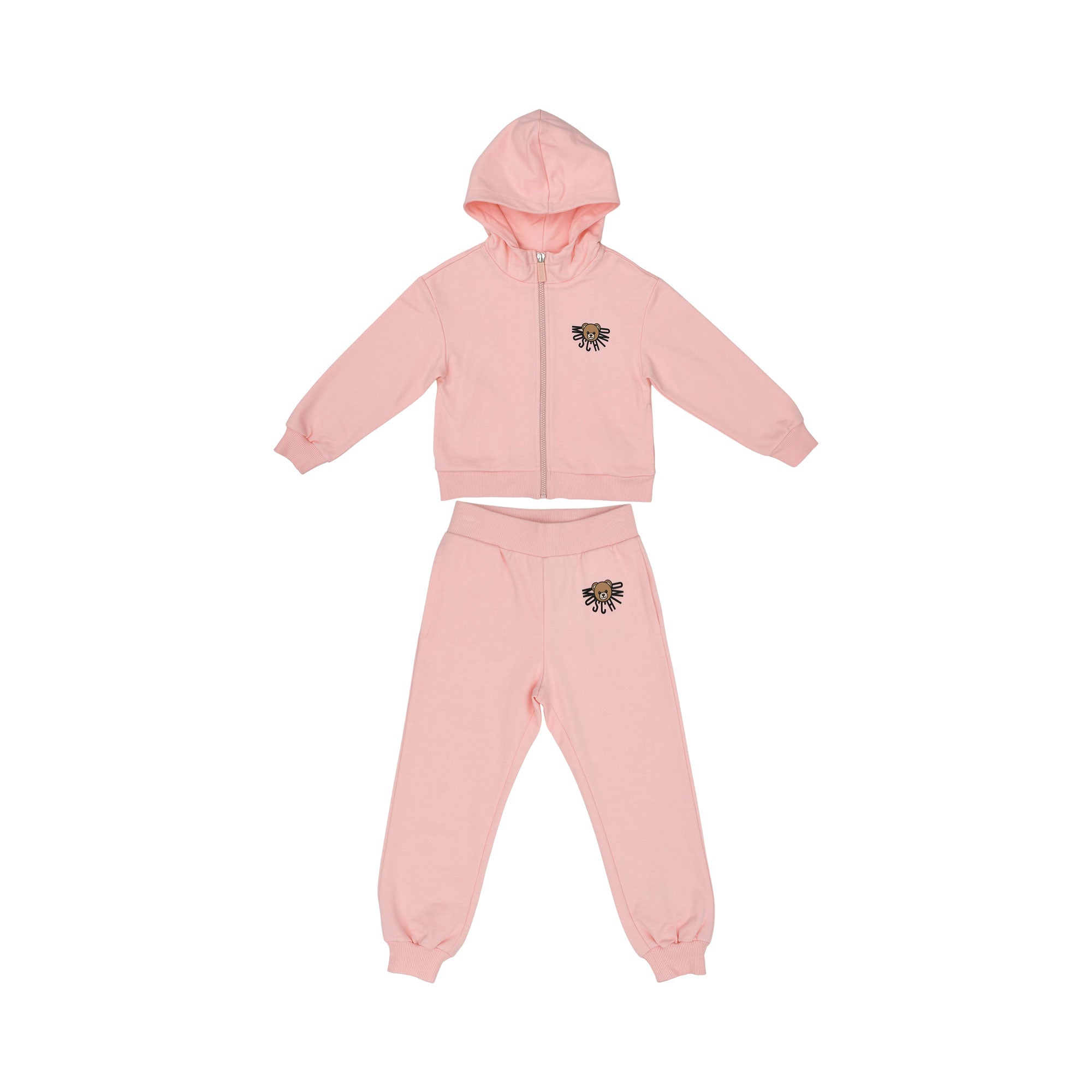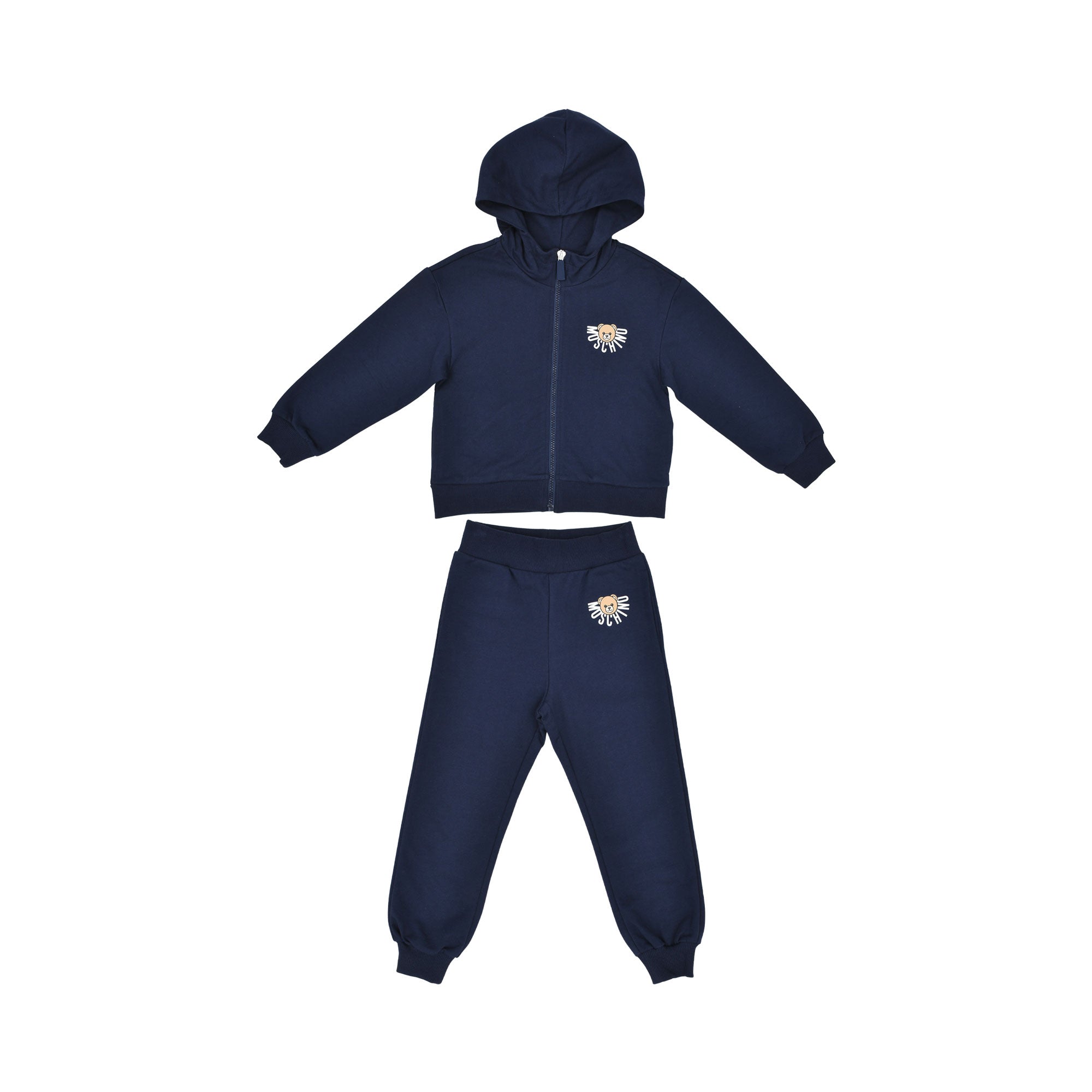 The Moschino Kids Jogging Suits are a stylish and playful choice for young fashion enthusiasts. Crafted from soft, comfortable cotton, these jogging suits feature a hooded top with a convenient zip fastening, making it easy for kids to dress themselves. The long sleeves are finished with elasticated cuffs for a snug fit, perfect for active play. The highlight of the design is the adorable embroidered teddy bear and the iconic Moschino brand logo on the top, adding a signature touch of charm and luxury. The matching trousers also showcase an embroidered teddy bear and brand logo, and are designed with an elasticated waistband and cuffs to ensure maximum comfort and a secure fit throughout the day. These jogging suits effortlessly combine comfort, functionality, and Moschino’s fun, distinctive character, making them an ideal addition to any child’s wardrobe.