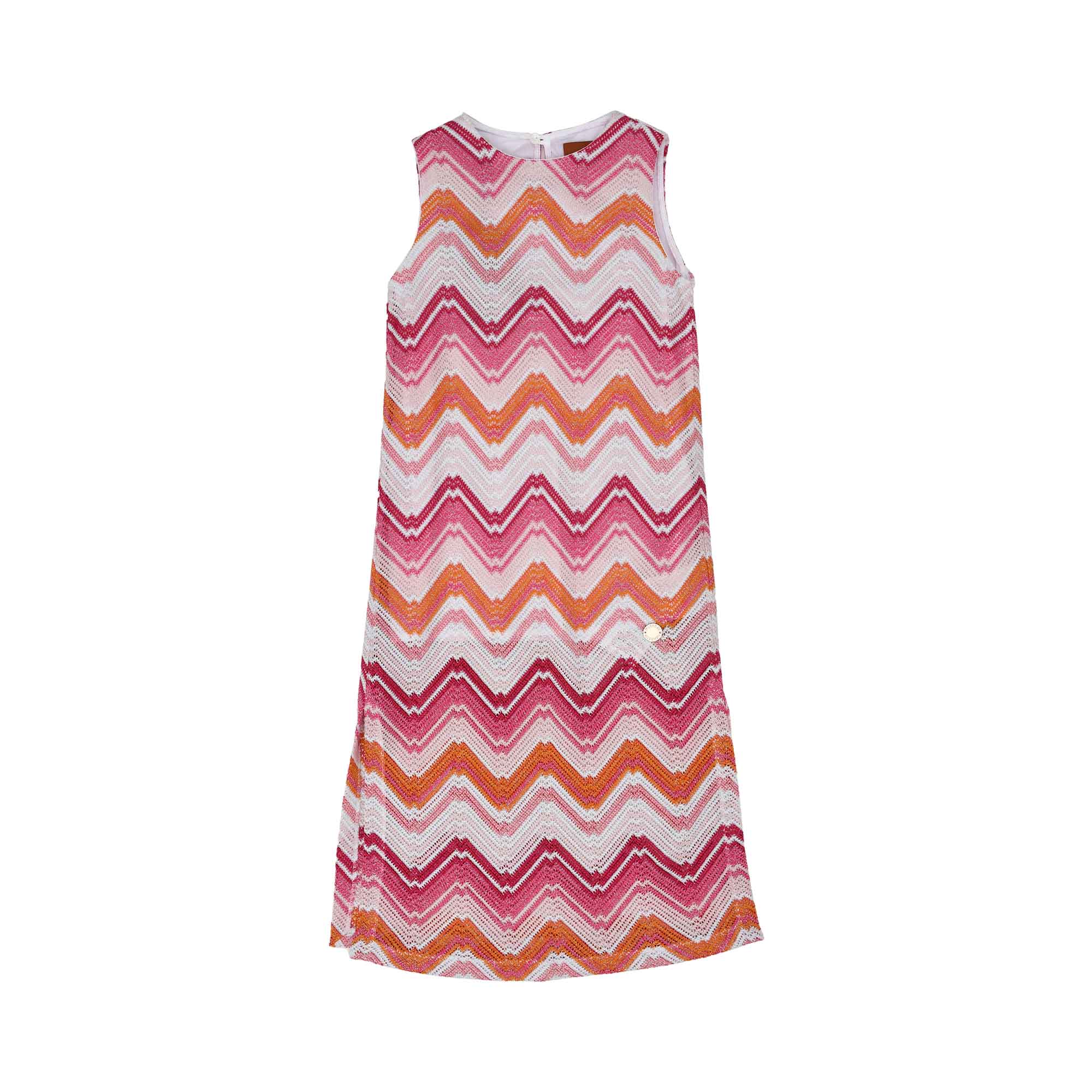 This is a sleeveless maxi dress for girls featuring Missoni's signature zigzag (chevron) knit pattern.