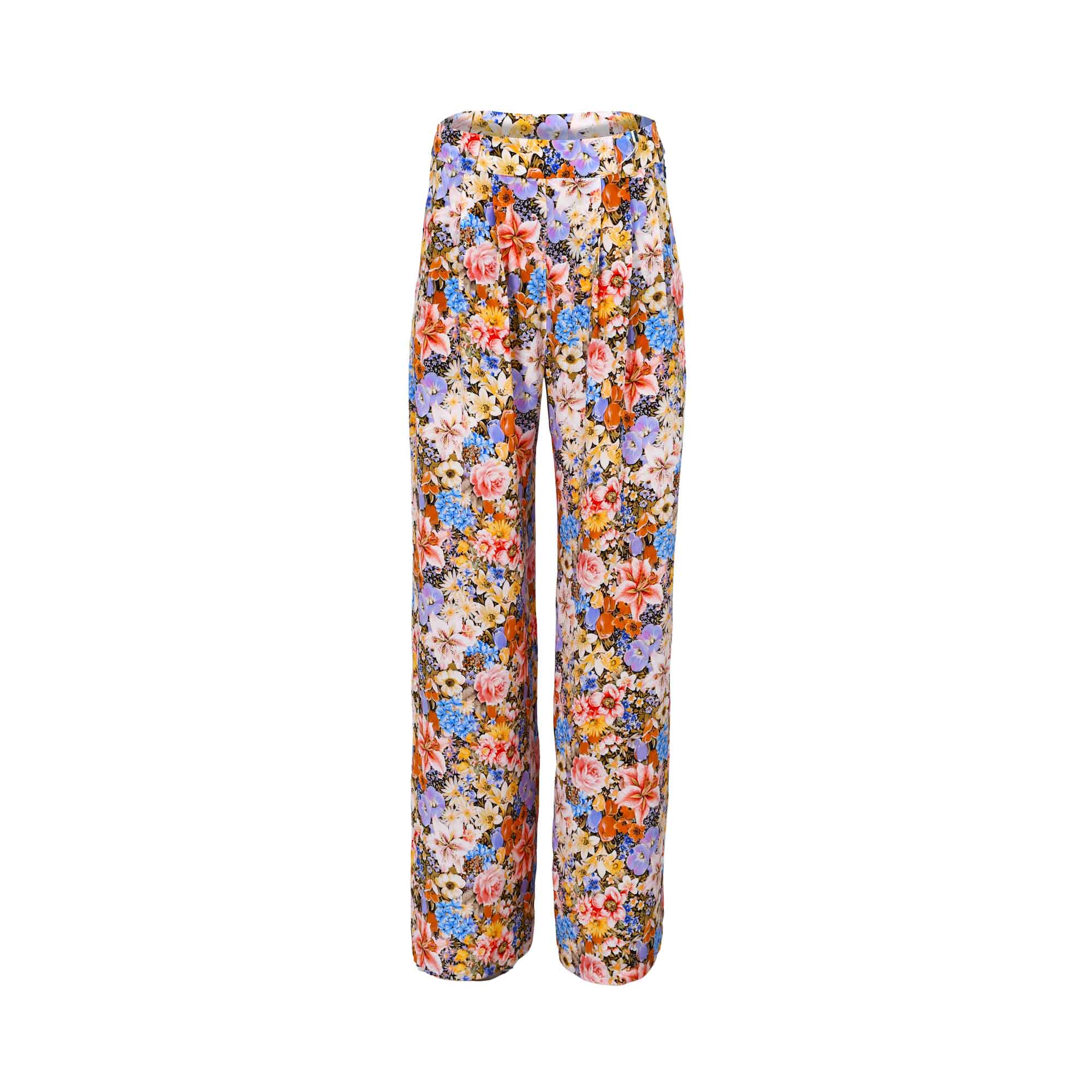 The Momoni Women's LANZAROTE Multicolor Pant in Crepe is one of the brand's bestsellers, celebrated for its airy, relaxed silhouette and effortless style. Designed with generous lines and front pleats, these pants offer both comfort and sophistication, making them ideal for both casual and semi-formal occasions. The in-seam side pockets add practicality, while the waistband features a back elastic for flexibility and ease of wear, complemented by belt loops that allow for versatile styling options. Crafted from lightweight crepe fabric in a vibrant multicolor palette, the Lanzarote pants embody Momoni’s signature fusion of comfort, artistry, and contemporary fashion, making them a versatile staple for any wardrobe.