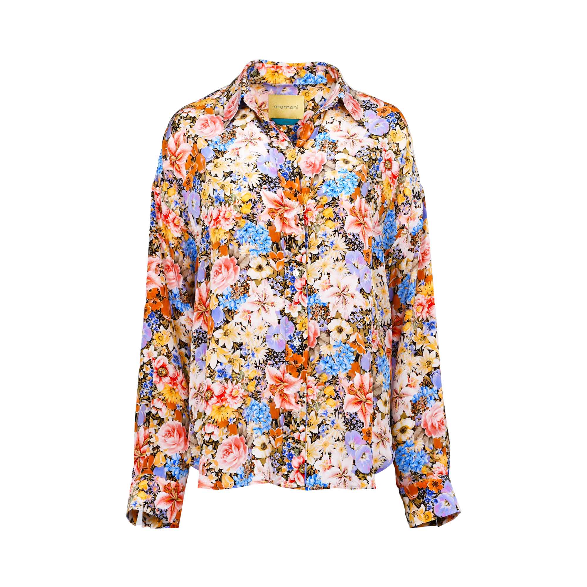 The Momoni Women’s PITANGA Multicolor Shirt is a vibrant and sophisticated piece that embodies contemporary elegance. Crafted with long sleeves and a classic collar neck, the shirt offers a timeless silhouette with a modern twist. Its front button fastening ensures easy wear and adds a touch of traditional style, while the lively floral print in multiple colors creates a bold and cheerful look. Perfect for both casual and formal occasions, this shirt seamlessly combines refined Italian craftsmanship with artistic design, making it a versatile addition to any wardrobe. Its striking pattern and classic tailoring make the PITANGA shirt ideal for expressing individual style with a blend of elegance and vibrancy.