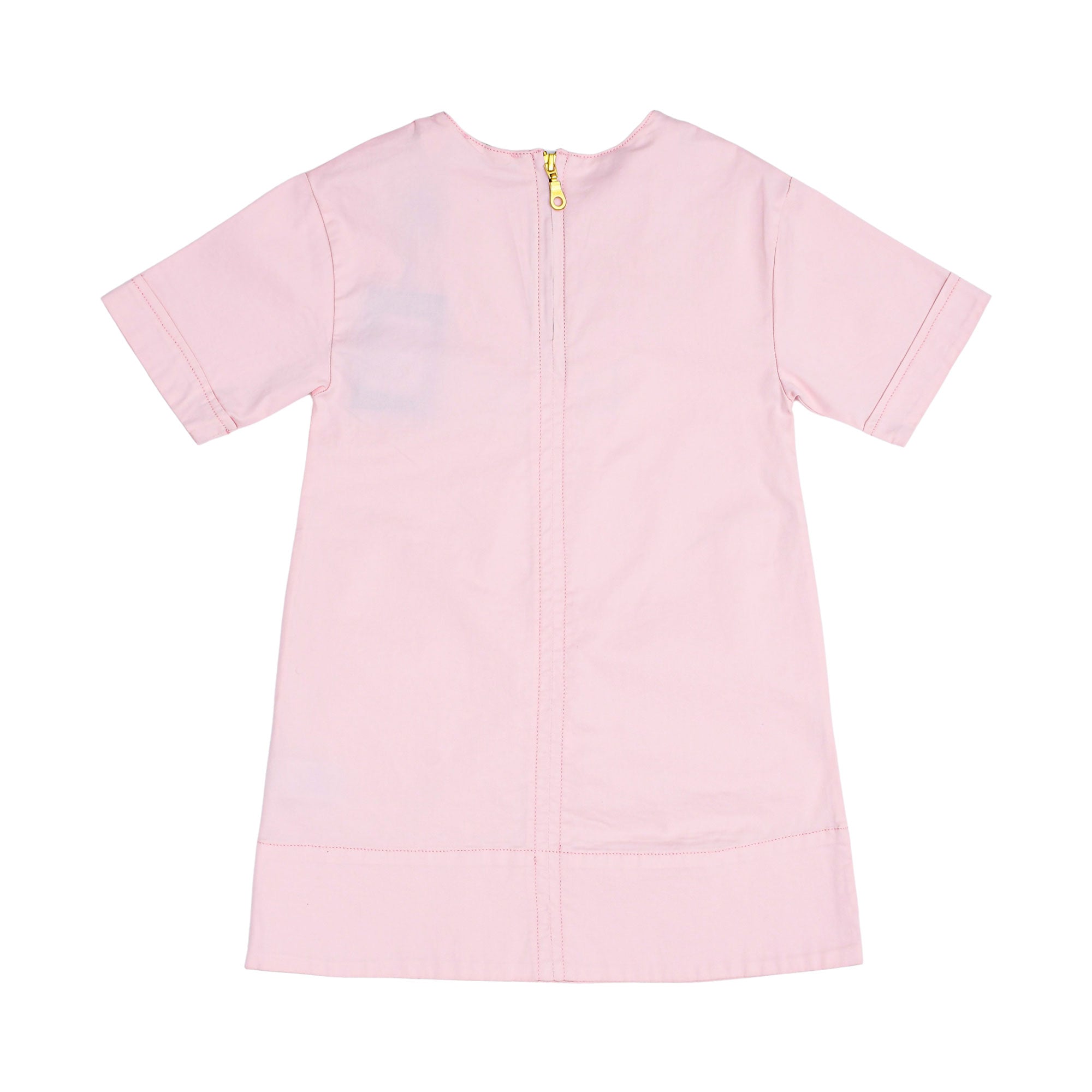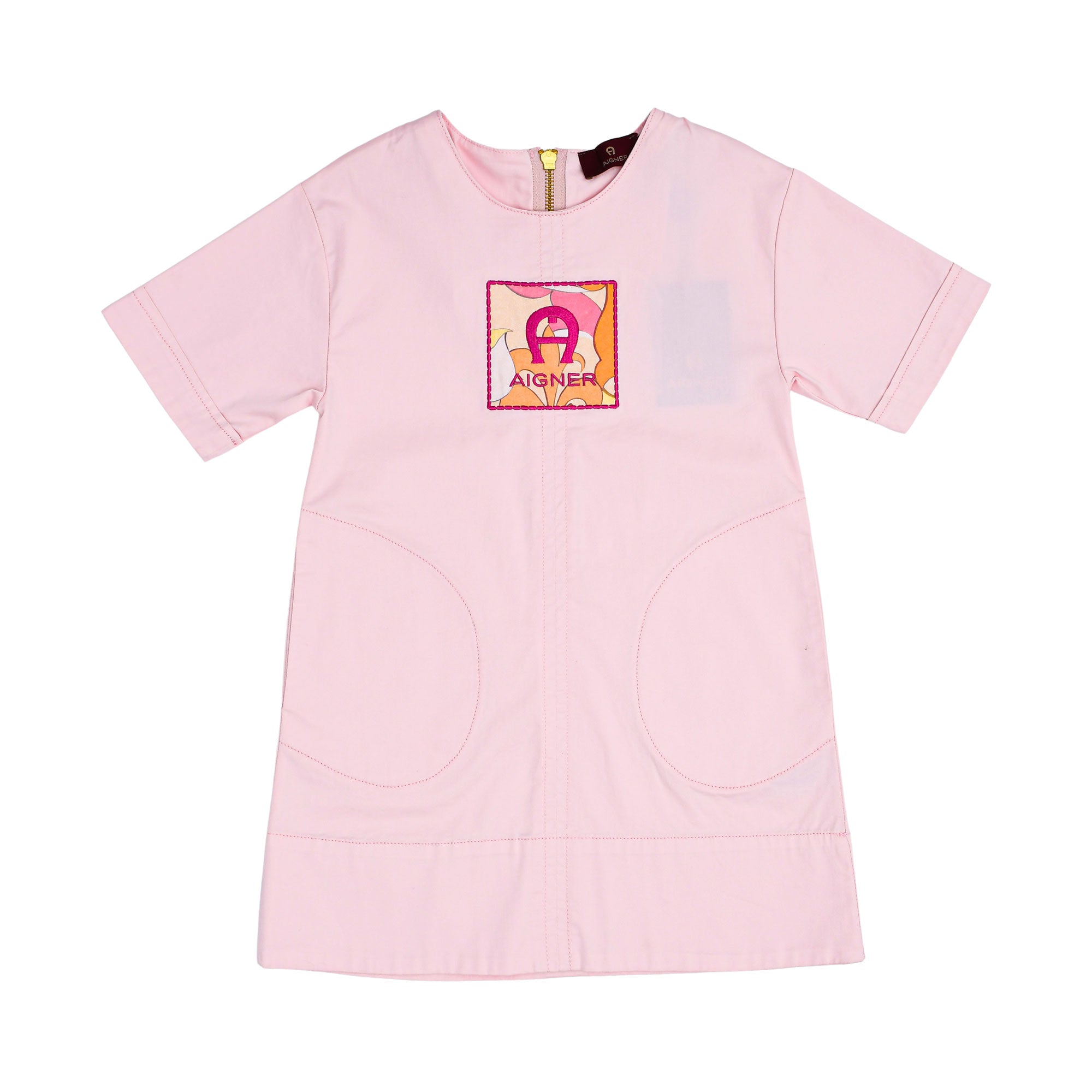 The Aigner Kids Girl's Pink Dress is a charming and comfortable choice for young girls. Crafted from soft cotton, it ensures breathability and ease of movement throughout the day. The dress features a classic crew neck and short sleeves, offering a simple yet stylish silhouette perfect for various occasions. A distinctive brand logo is tastefully displayed on the front, adding a touch of designer flair. The dress is designed with a concealed back zip fastening, making it easy to put on and take off while maintaining a sleek and polished look. This dress combines practicality and elegance, making it a delightful addition to any child's wardrobe.