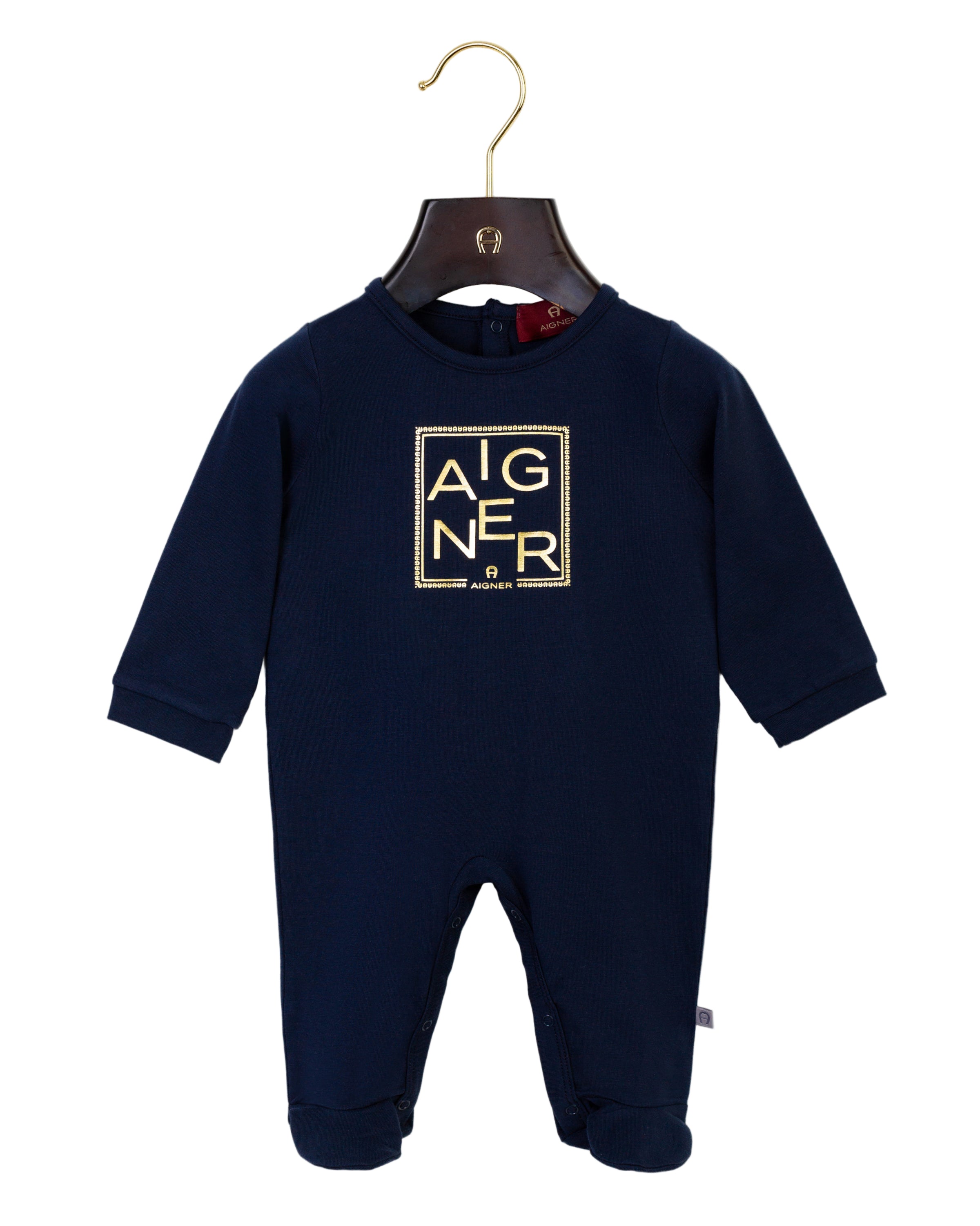 • Luxurious and practical newborn set by Aigner, including sleepsuit, bib, and hat