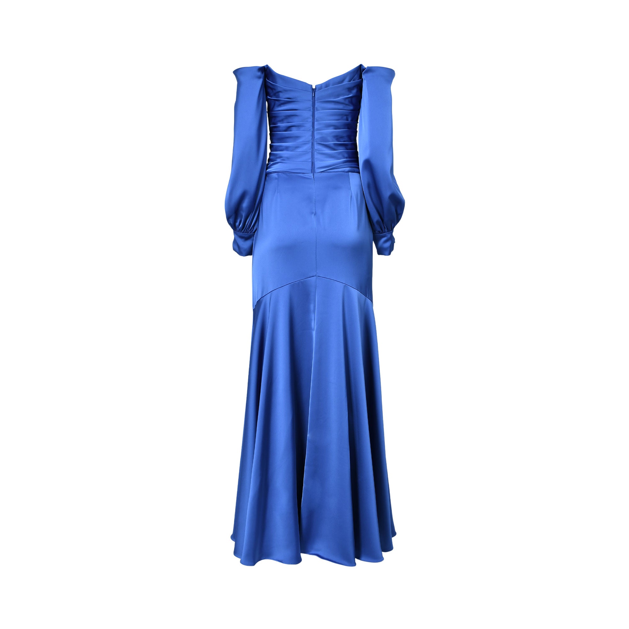 The Theia Women's Royal Blue Gown is an elegant and sophisticated choice for any formal occasion. Featuring an off-shoulder neckline, it beautifully accentuates the collarbones and shoulders, adding a touch of timeless glamour. The fit and flare silhouette enhances the wearer’s figure by fitting closely to the body through the bodice and waist before gracefully flaring out, creating a flattering hourglass shape. The floor-length design adds to the gown’s refined and dramatic appeal, perfect for making a grand entrance. Completed with long sleeves, this gown offers a balanced blend of modesty and style, making it ideal for evening events, galas, or weddings where a polished and regal look is desired.