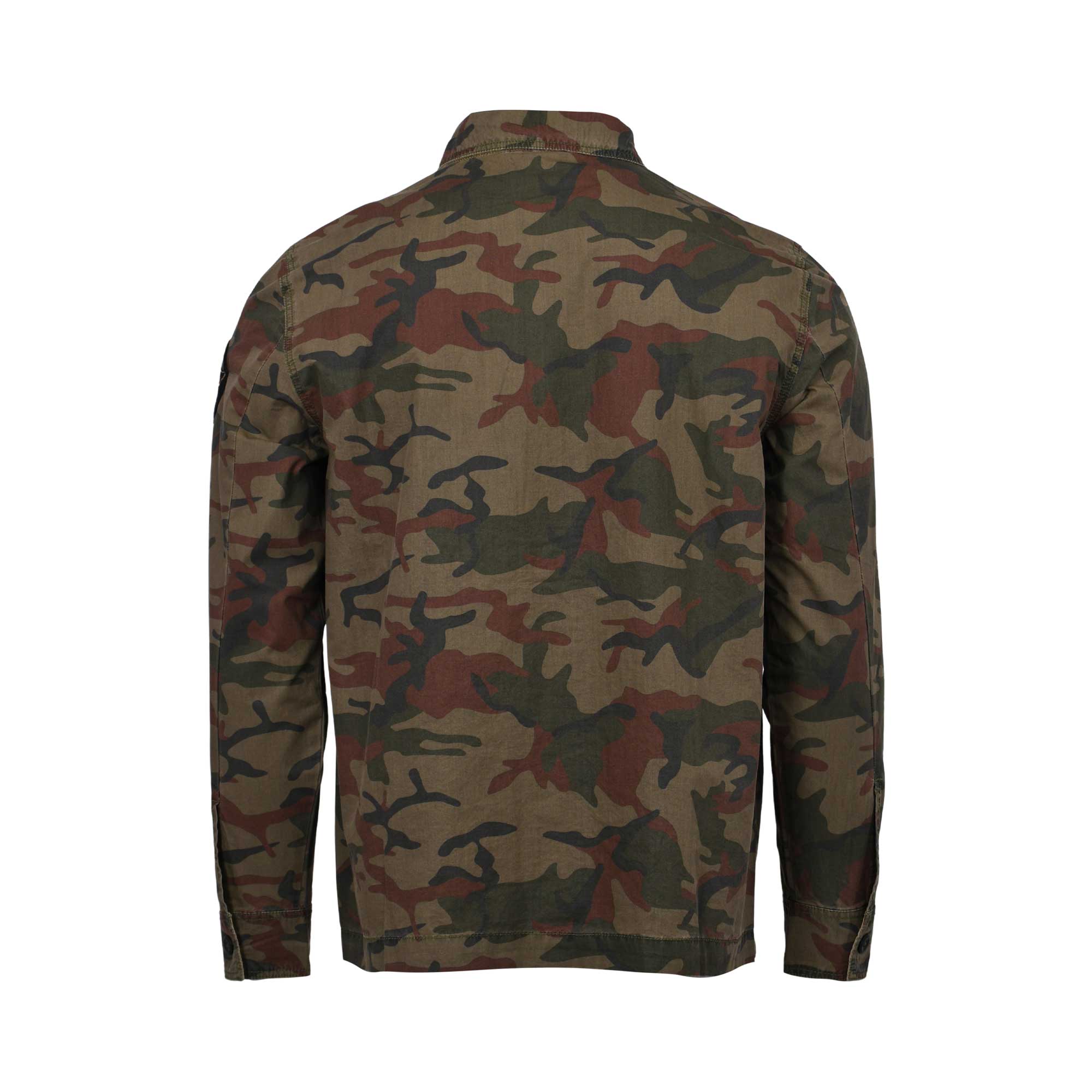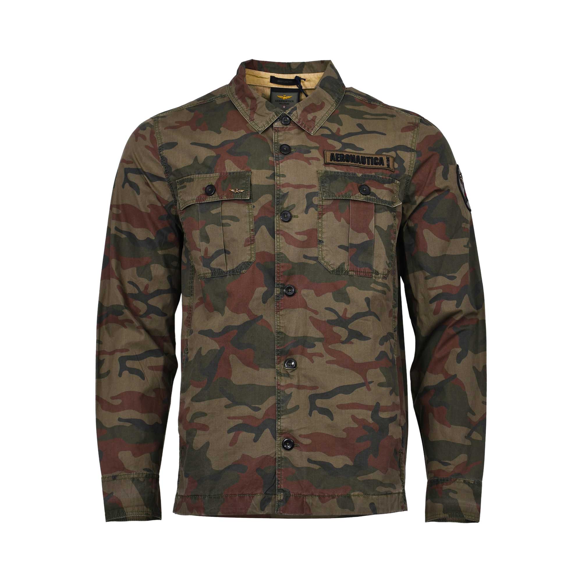 The Aeronautica Militare Men's Military Olive Shirt is crafted from high-quality cotton material, ensuring both comfort and durability. Featuring a striking green camouflage color (CAMOU MILITARY), this shirt exemplifies rugged military-inspired style. Its straight cut offers a modern, flattering silhouette, while the classic turn-down collar adds a touch of timeless sophistication. The shirt is designed with a practical button closure and two patch pockets on the front, providing both functionality and a casual aesthetic. Distinctive brand details include a brand name patch and a badge featuring the Aeronautica Militare symbol on the front, underscoring its authentic heritage. Additionally, a 155 Squadron badge proudly adorns the sleeve, highlighting the shirt’s exclusive and iconic military connection.