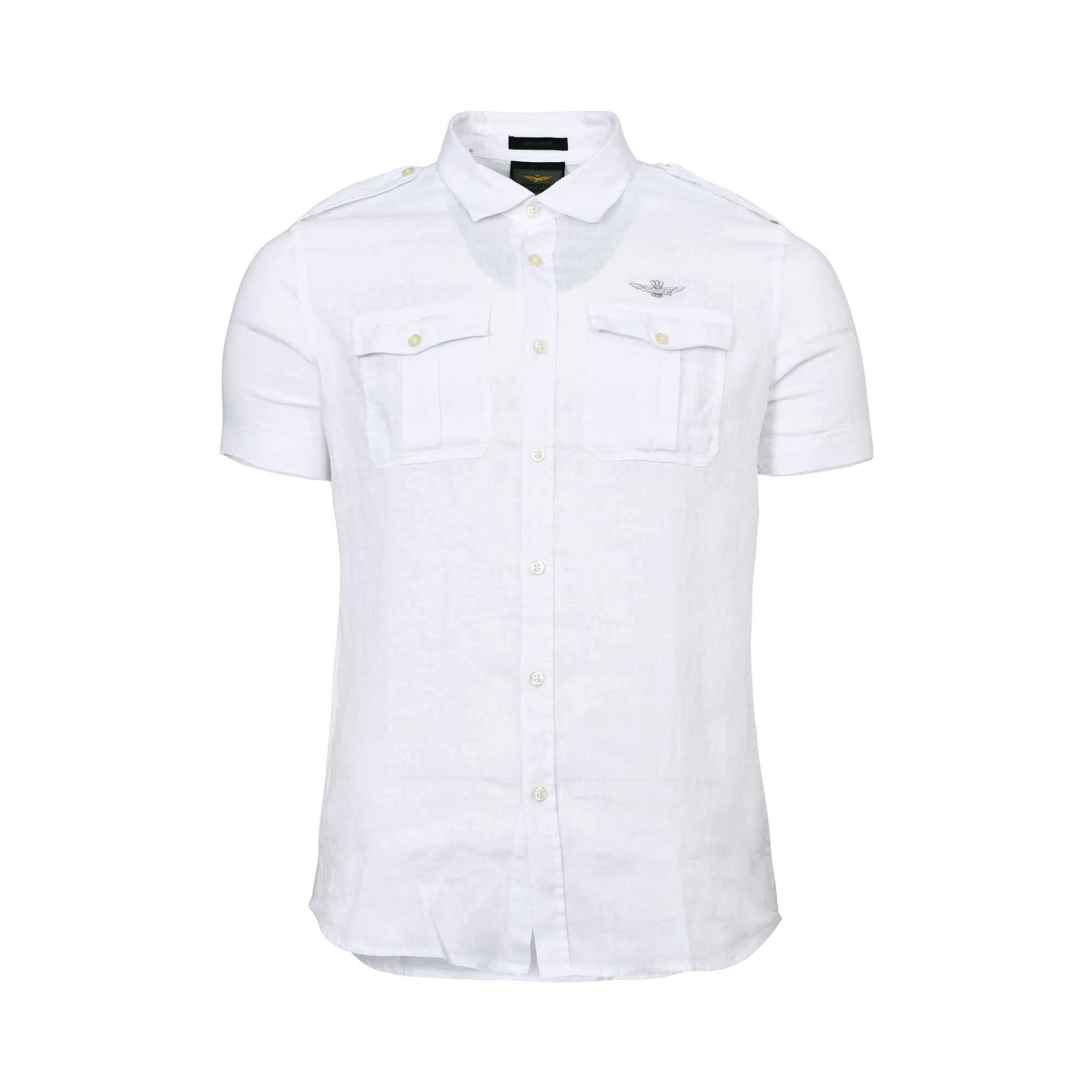 The Aeronautica Militare Men's Polo Shirt is a stylish blend of casual elegance and premium craftsmanship. Crafted from pure linen fabric, this polo shirt offers exceptional breathability and comfort, making it perfect for warm-weather wear. It features short sleeves and a classic button fastening, providing a timeless and versatile look. The shirt is distinguished by its flapped chest pockets, which add a touch of utility and sophistication to its regular fit silhouette. An embroidered eagle on the chest proudly showcases the brand's iconic insignia, reflecting a sense of heritage and attention to detail. This polo shirt seamlessly balances practicality and style, making it a versatile addition to any modern wardrobe.