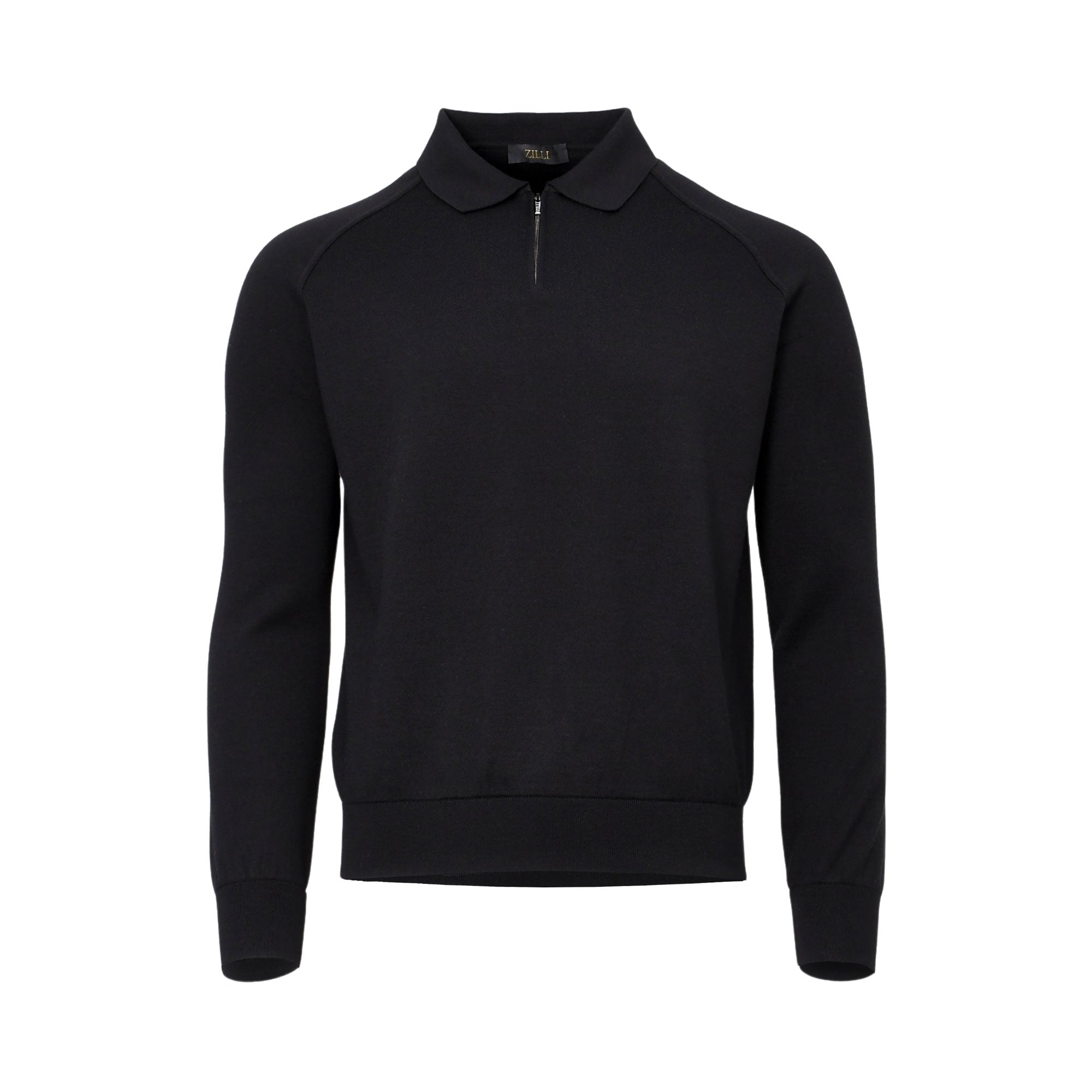 Zilli Men's Black Wool Half-Zip Polo Sweater