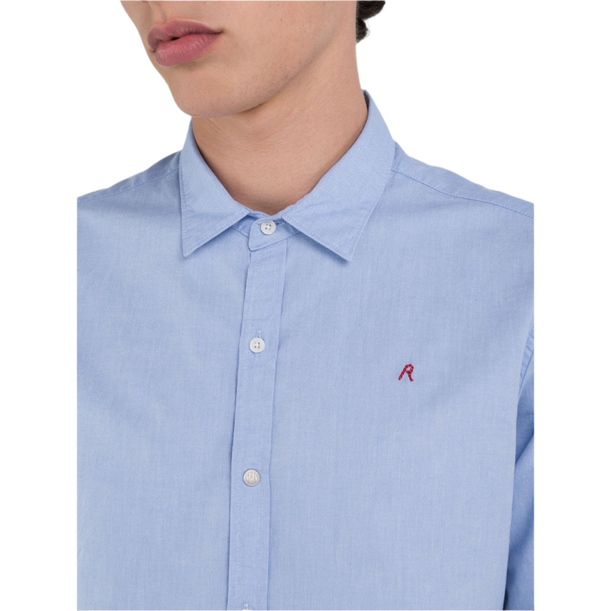 Regular-fit shirt in cool Oxford cotton poplin fabric for an instant feeling of comfort against the skin. This long-sleeved piece features a rounded hem and a breast pocket bearing the signature R embroidery, a hallmark Replay detail. A must-have item for all men's wardrobes, whose contemporary and versatile feel makes it perfect for wearing on a wide variety of wear occasions.