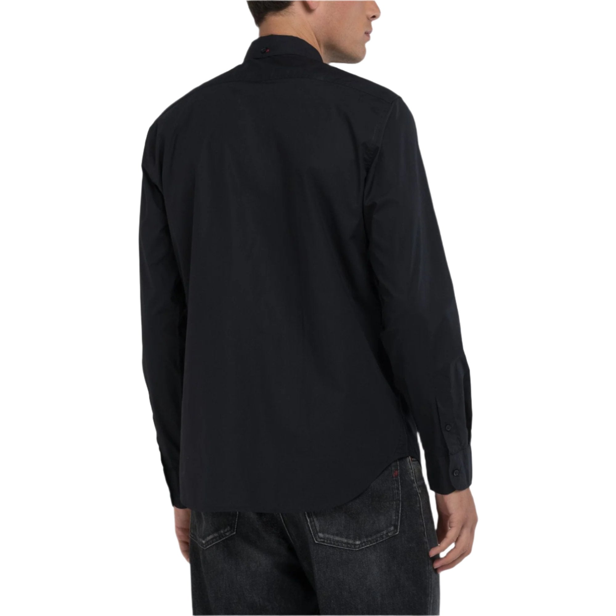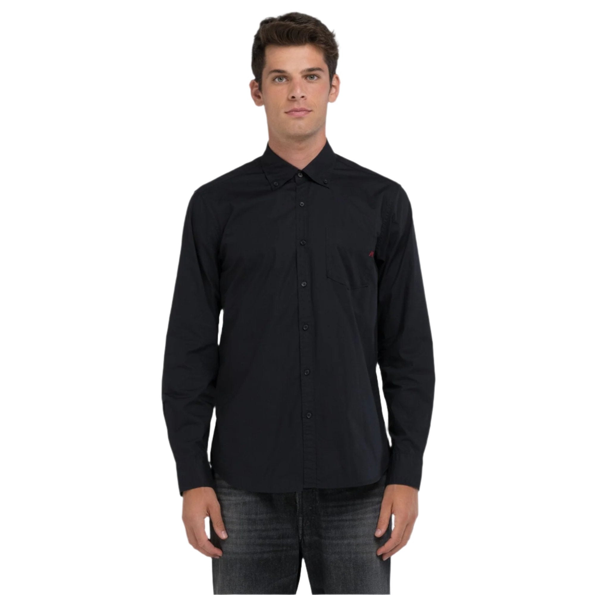 Regular-fit shirt in cool cotton poplin fabric for an instant feeling of comfort against the skin. This long-sleeved solid-color piece features a rounded hem and a breast pocket bearing the unmistakable R embroidery, a hallmark Replay detail. A must-have item for all men's wardrobes, whose contemporary and versatile feel makes it perfect for wearing on a wide variety of wear occasions.