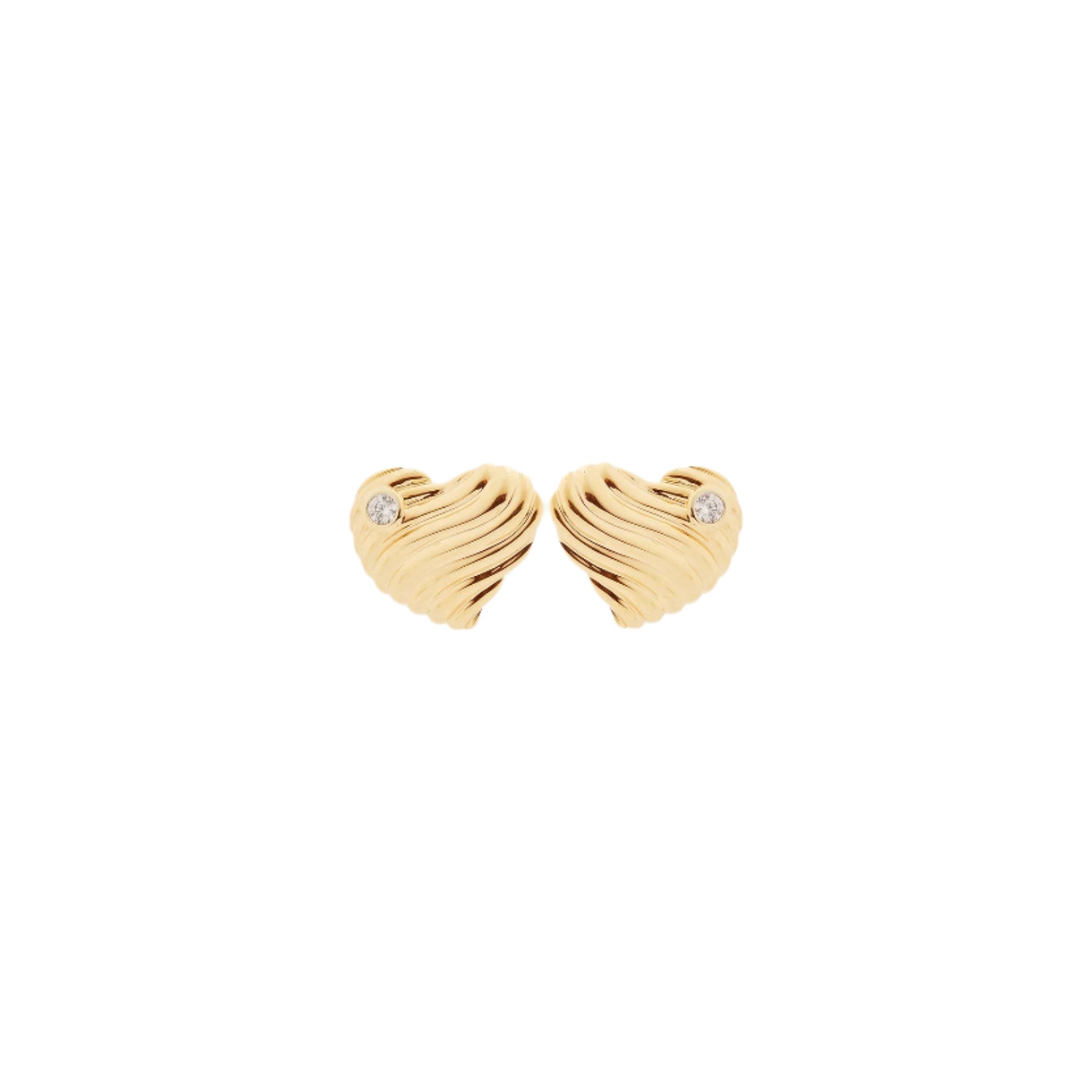 Les Nereides Charms D'Amour Ripple Effect Heart and Cubic Zirconia Clip-On Earrings