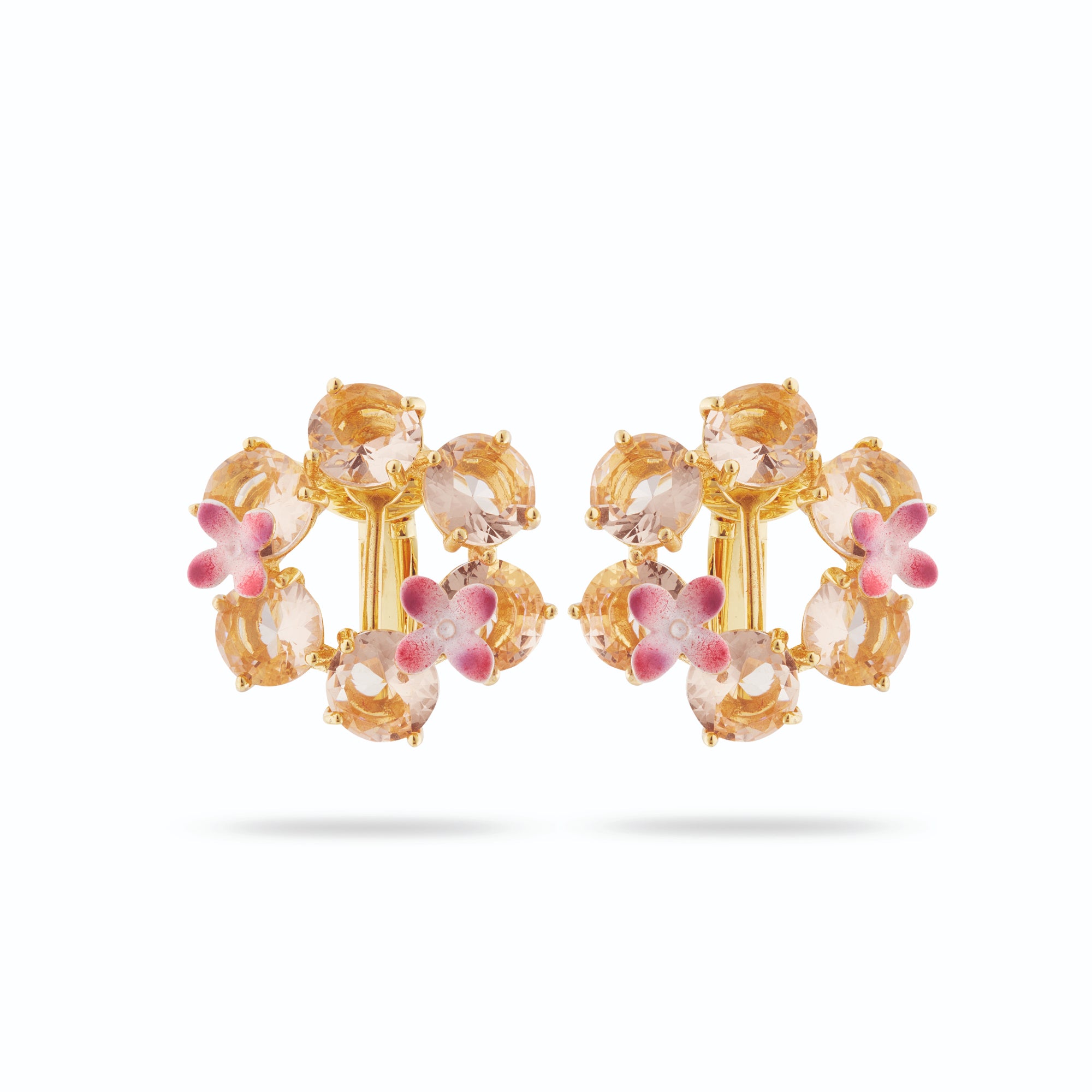 Les Nereides Apricot Peach Diamantine Flower 6 Round Stone Clip-on Earrings