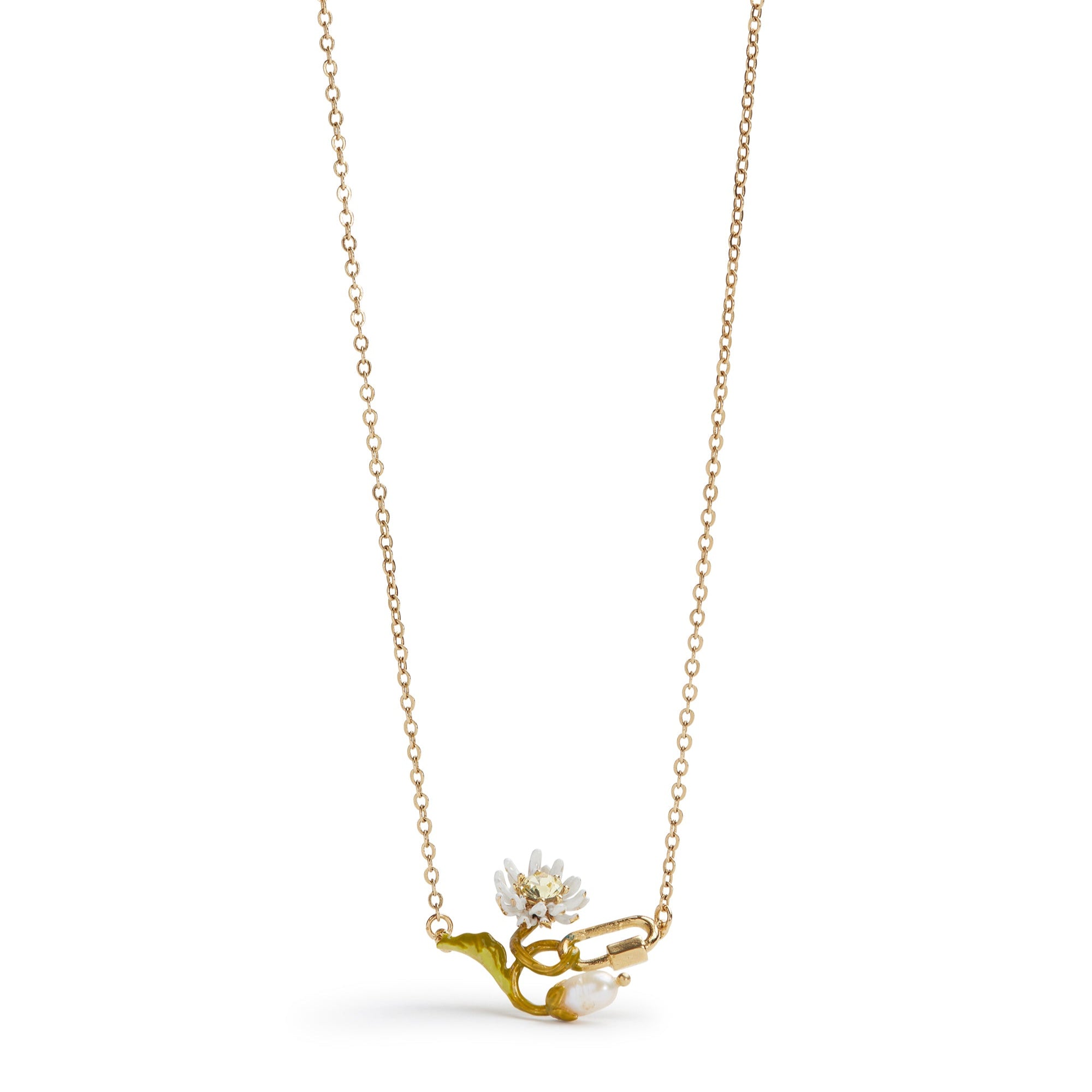 • Les Nereides Fine Necklace with White and Green Daisy, Mother of Pearl Bead, and Carabiner is delicate and charming.