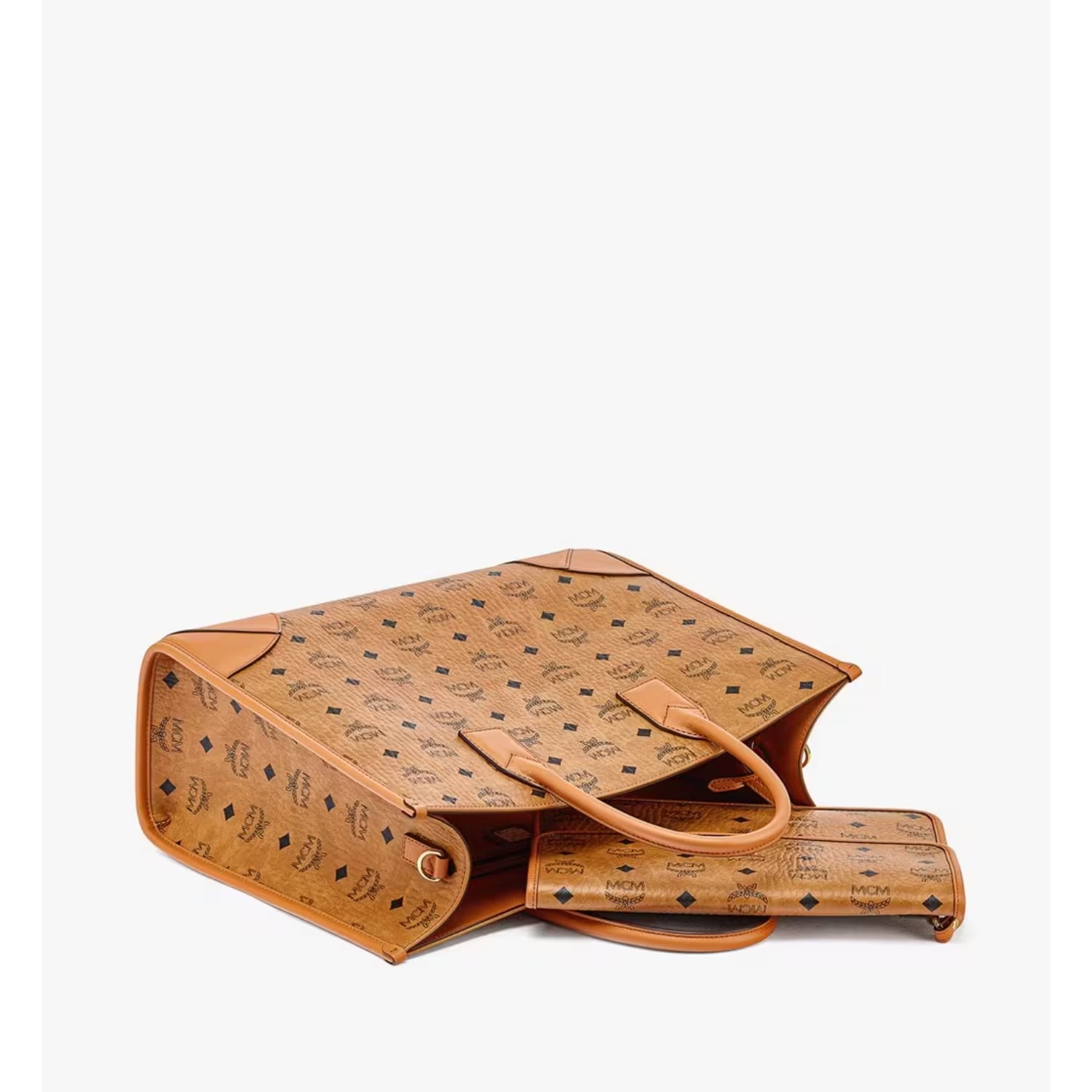 The MCM Women's München Tote in Visetos is a testament to sophisticated craftsmanship and timeless design. Meticulously constructed from Visetos monogram canvas, this tote seamlessly blends iconic style with everyday functionality. Accented with luxurious natural nappa leather trim and supple leather corners—a design element drawn from MCM’s archival luggage—the silhouette pays homage to the brand’s jet-setting heritage. Its structured form not only enhances its aesthetic appeal but also maximizes practicality, offering an expansive microfiber suede interior with generous compartments for effortless organization. Adding an element of intrigue, a matching monogram pouch is concealed within, ready to serve as an independent accessory for short trips or quick errands. The combination of thoughtful details and elevated materials makes the München Tote a coveted companion for the modern, style-conscious traveler.