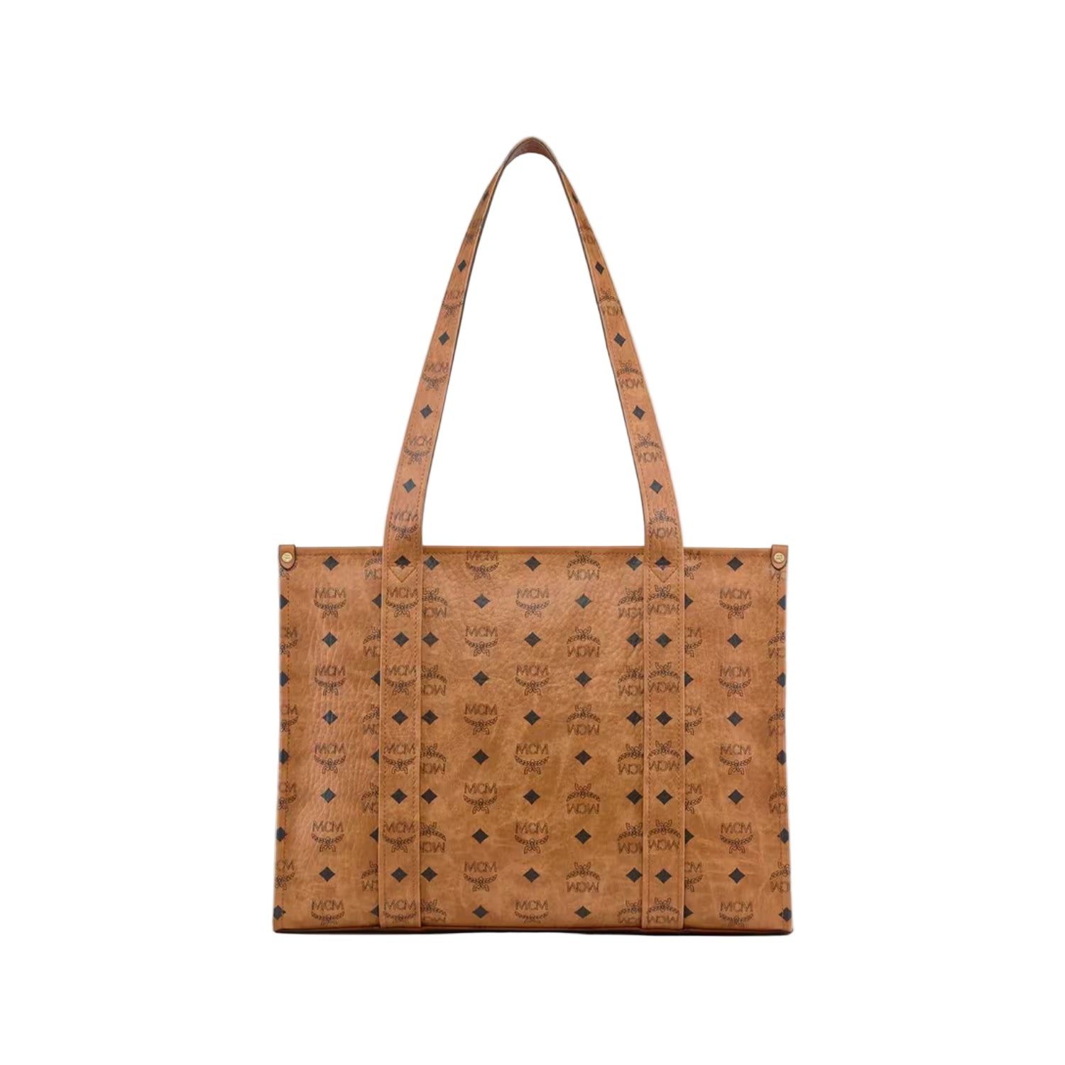 The MCM Women’s Aren School Tote in Visetos is a sophisticated companion tailored for those who strive for excellence in both academic and professional environments. Crafted from the brand’s iconic Visetos monogram canvas and complemented by natural leather trim, the large Aren School Tote exudes a timeless elegance that seamlessly blends style with practicality. Its design is elevated by the iconic 24k gold-plated logo brass plate, which underscores its luxurious heritage. Inside, the tote boasts a spacious interior, providing ample room to carry documents, laptops, and other daily essentials, making it the perfect blend of form and function. Whether heading to a lecture hall or a boardroom, the MCM Aren School Tote ensures its wearer stays organized and sophisticated at every step.