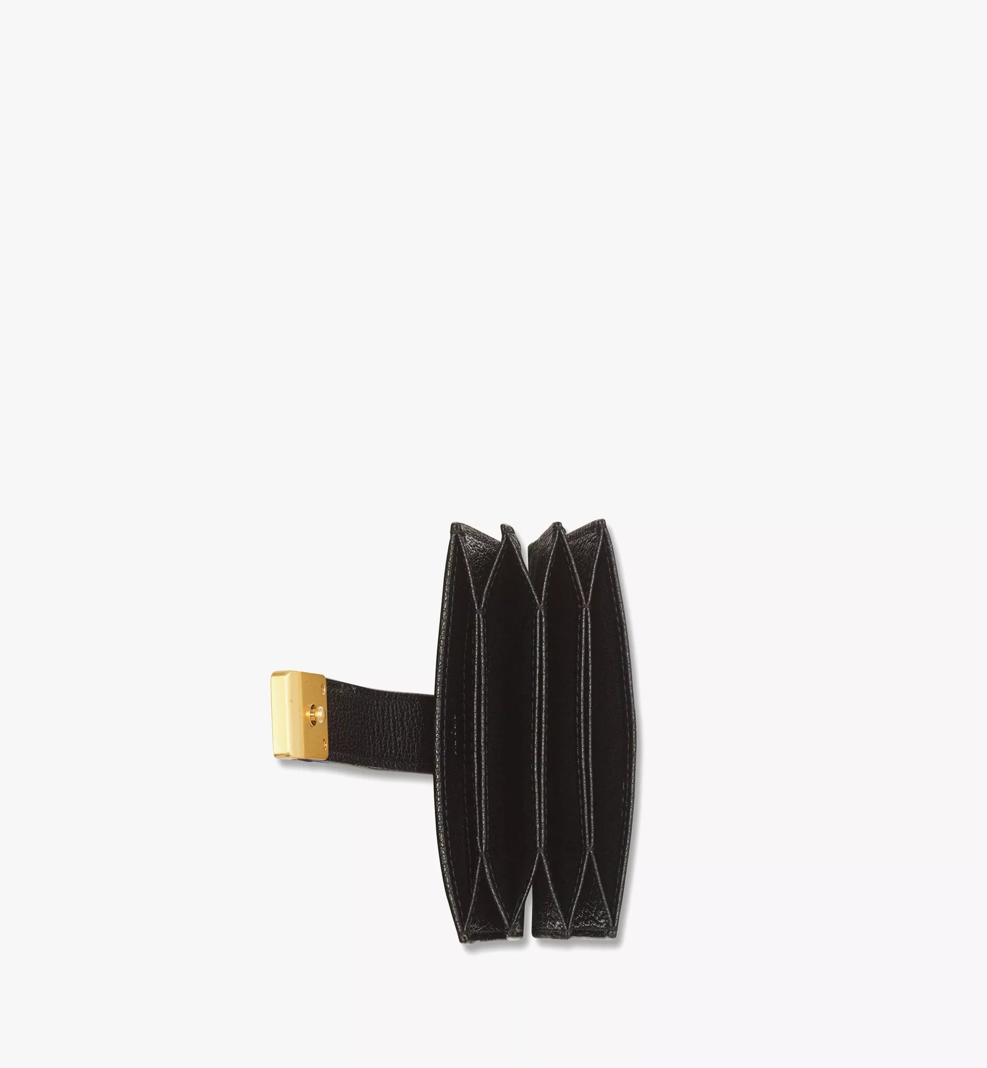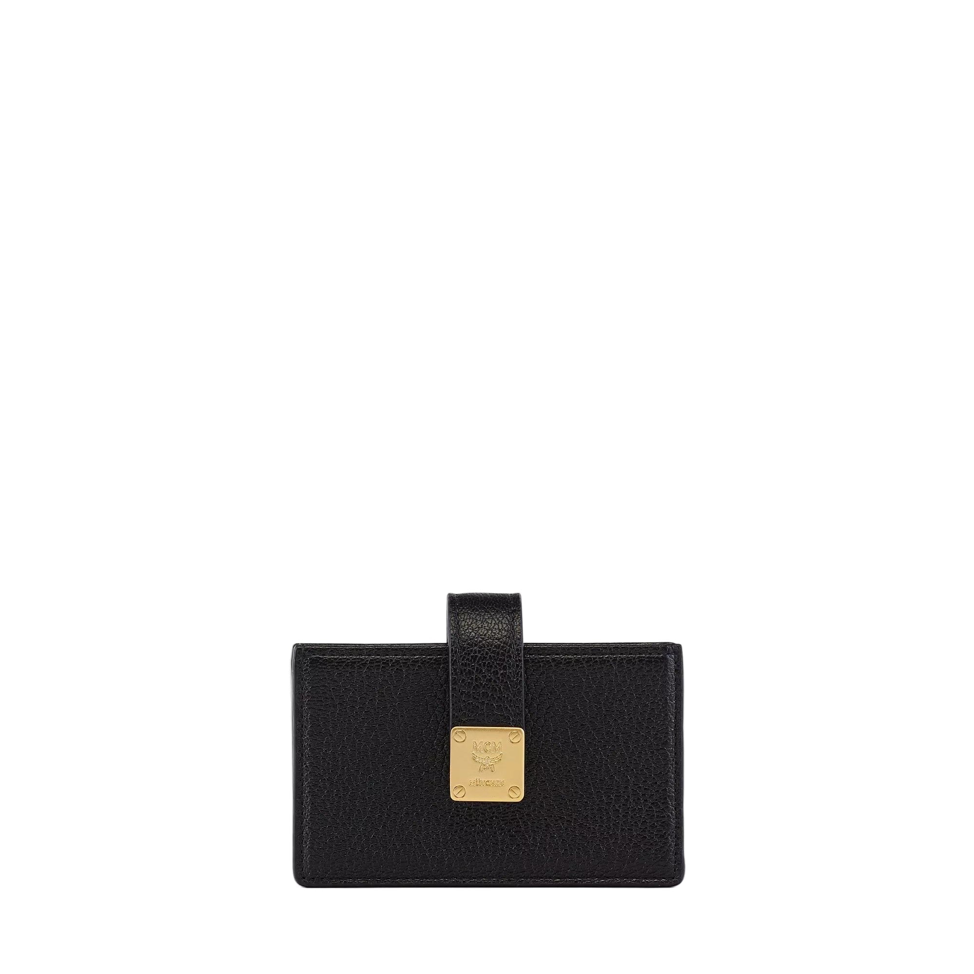 The MCM Aren Brass Plate Card Wallet is a sophisticated accessory crafted from premium Italian goatskin leather, known for its rich texture and durability. This grained card case is elegantly sealed with the iconic 24k gold-plated logo brass plate, a distinguished heritage hallmark of the Munich House, adding a touch of luxury and timeless appeal. Designed with multiple compartments, the wallet offers ample and organized storage space for cards and credentials, combining practicality with refined style. Its snap closure not only secures the contents but also enhances the wallet's sleek and polished aesthetic, making the MCM Aren Brass Plate Card Wallet an exquisite choice for those seeking both functionality and high-end fashion.