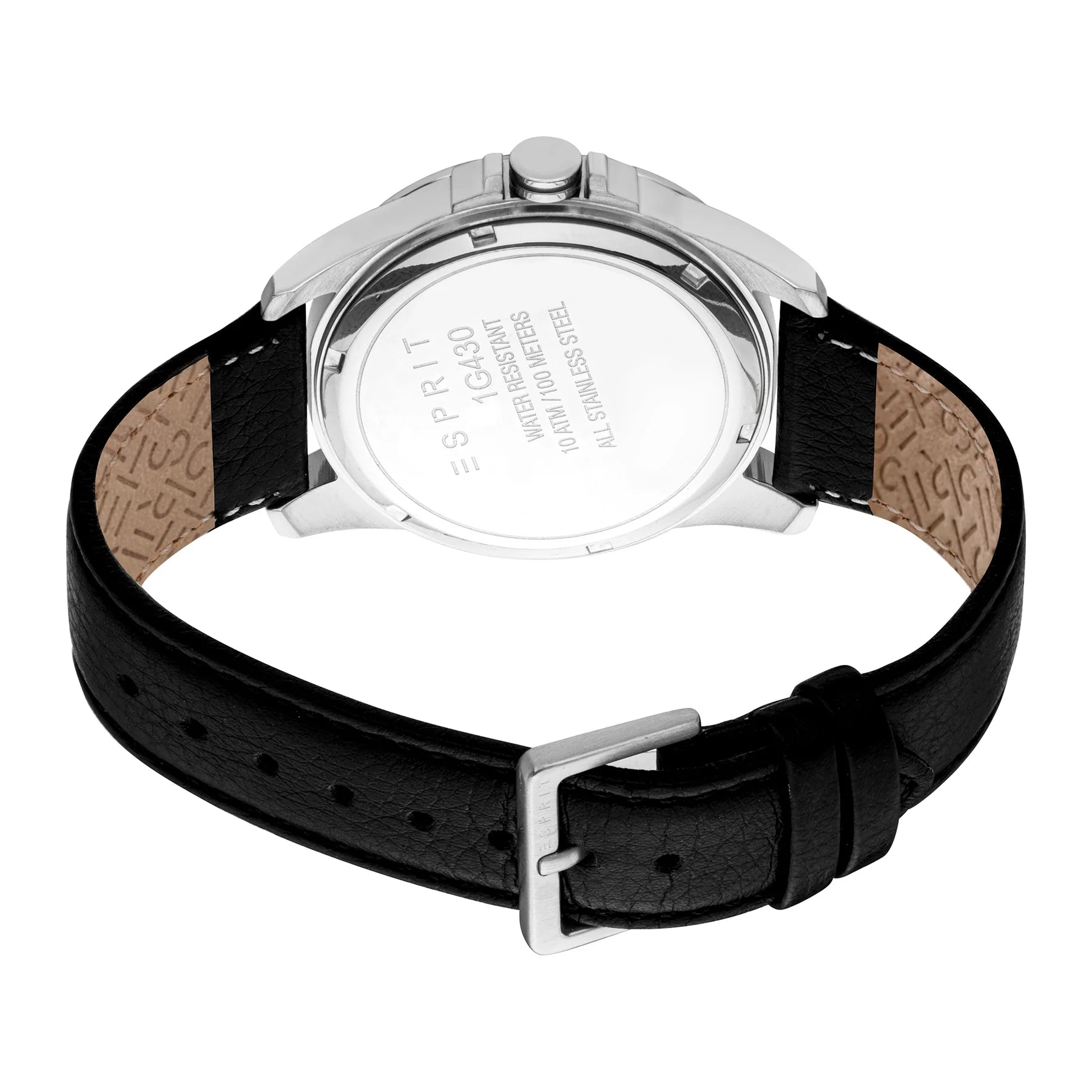 Esprit Leo III Gents White Dial Silver Stainless Steel Case Black Leather Strap Watch