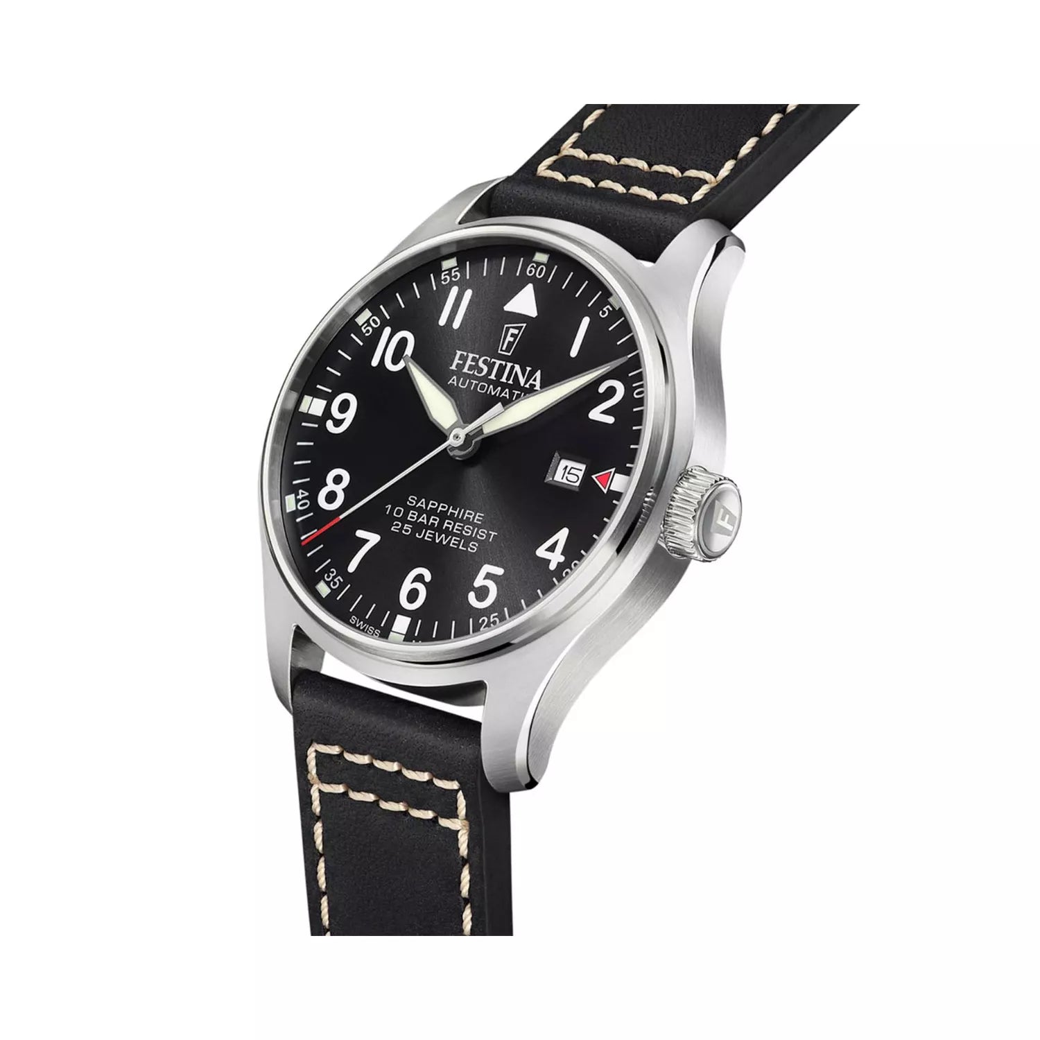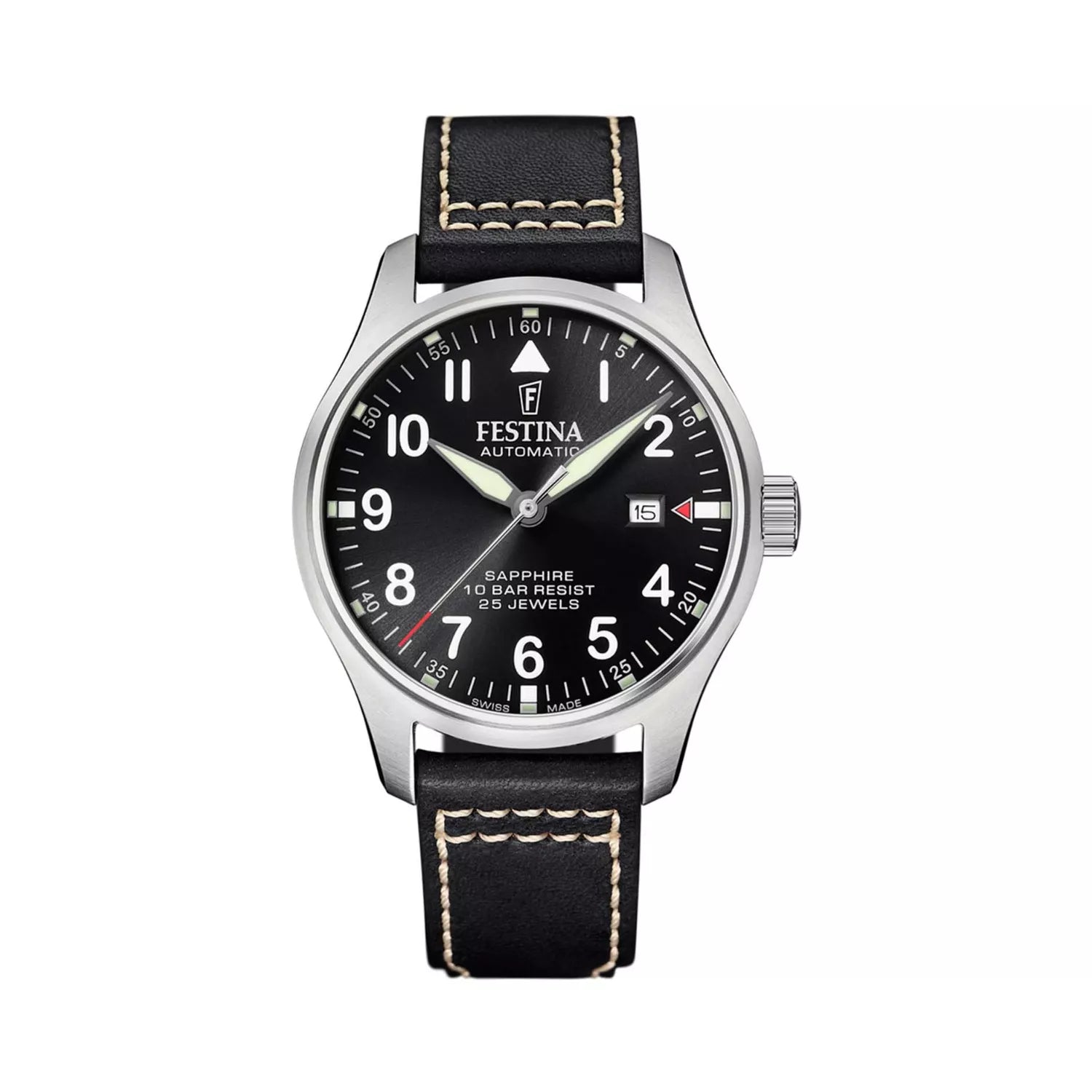 Festina F20151/4 Gents Automatic Black Dial Black Leather Strap Watch