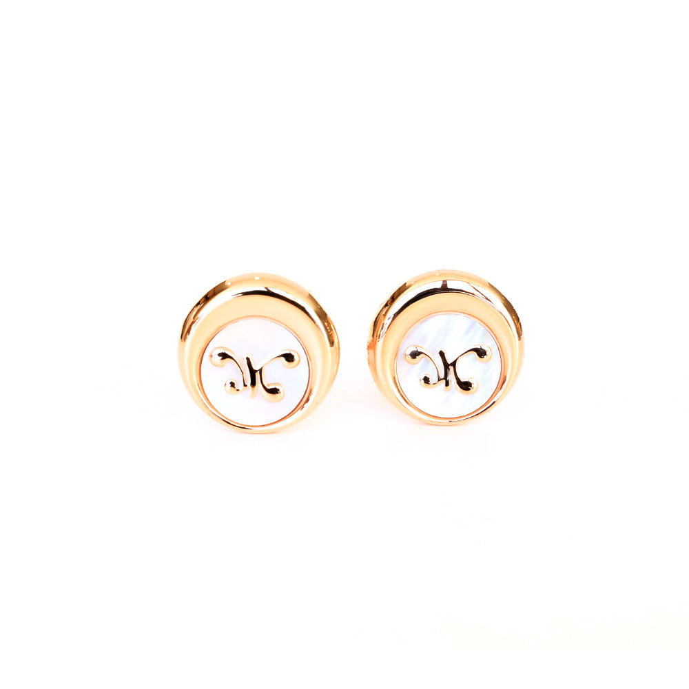 Korloff Cufflinks Luna Full Ip Rosegold & Mop With Ip Rosegold Brand Logo