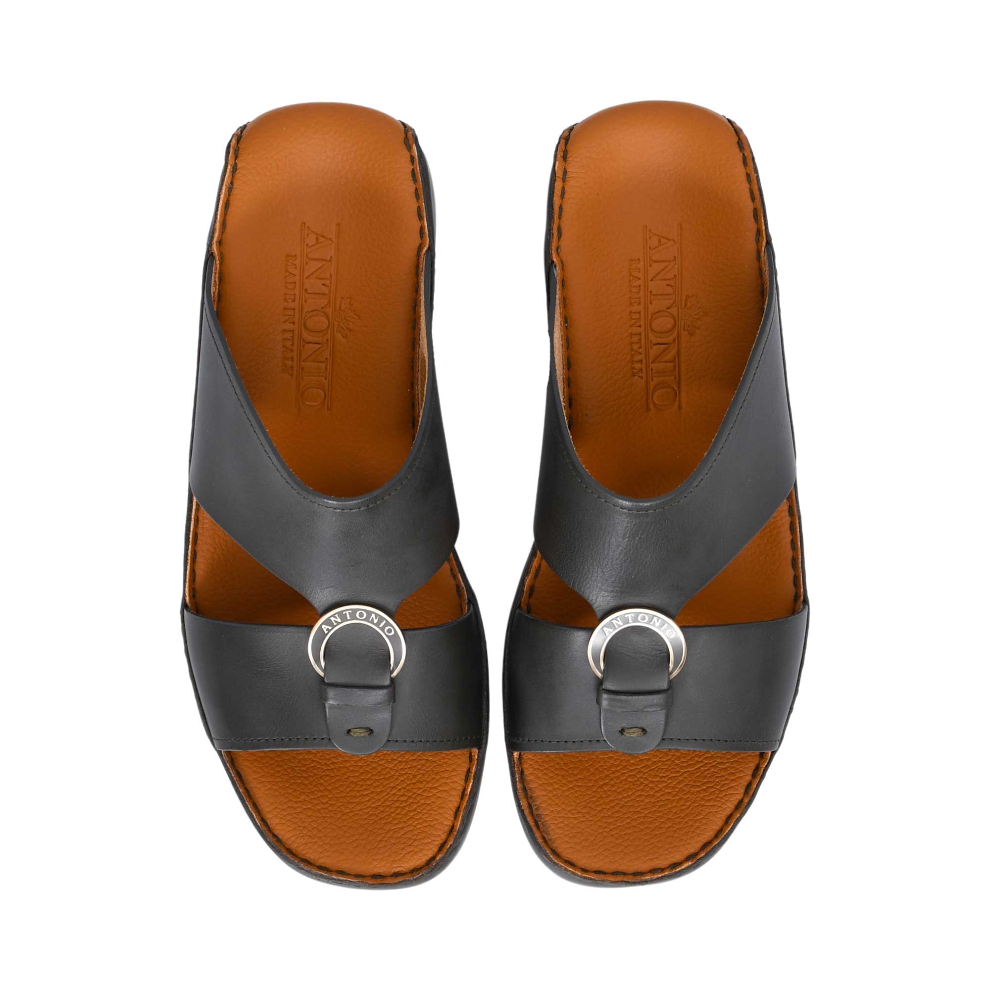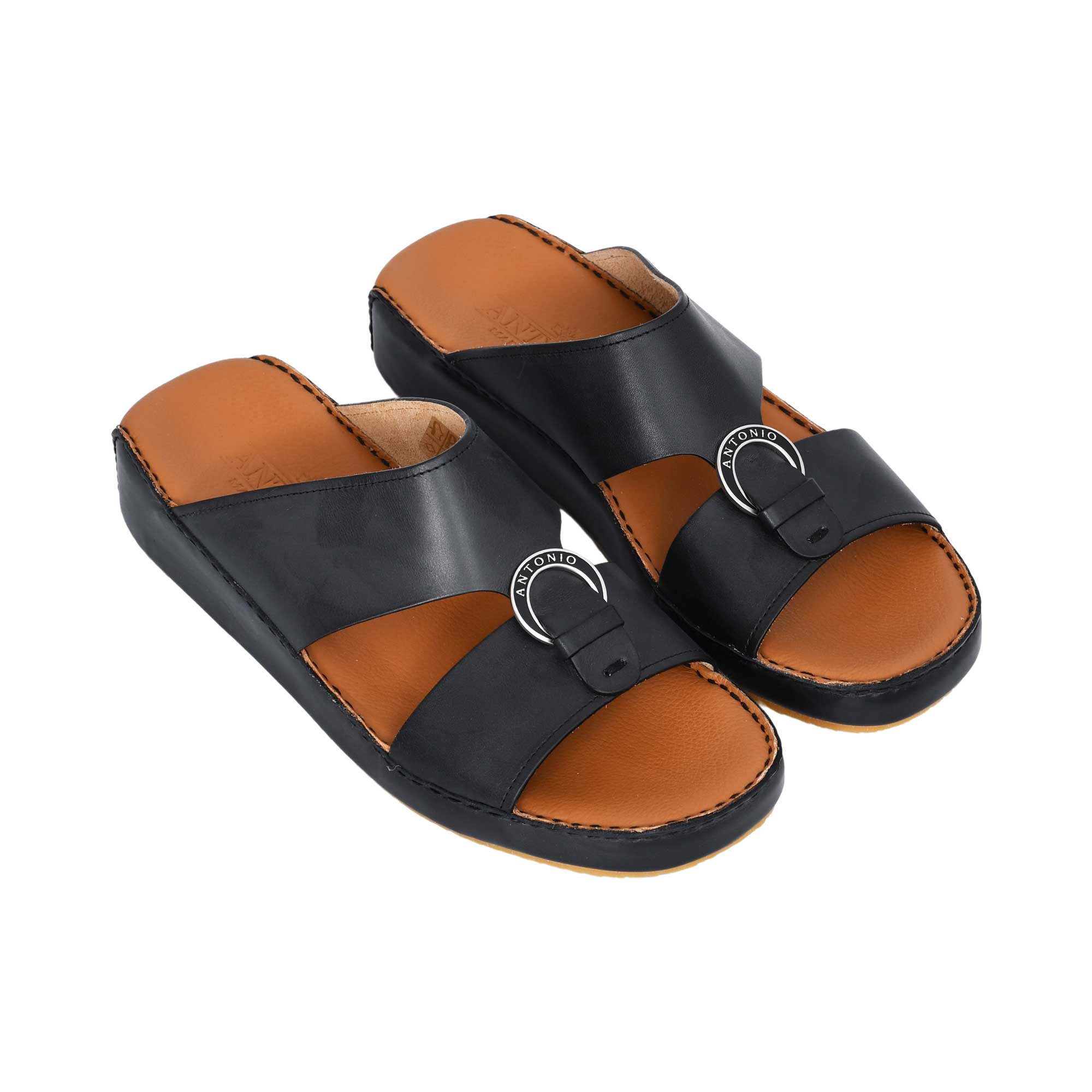 Antonio Men's Genuine Leather Arabic Sandals with Metal Buckle