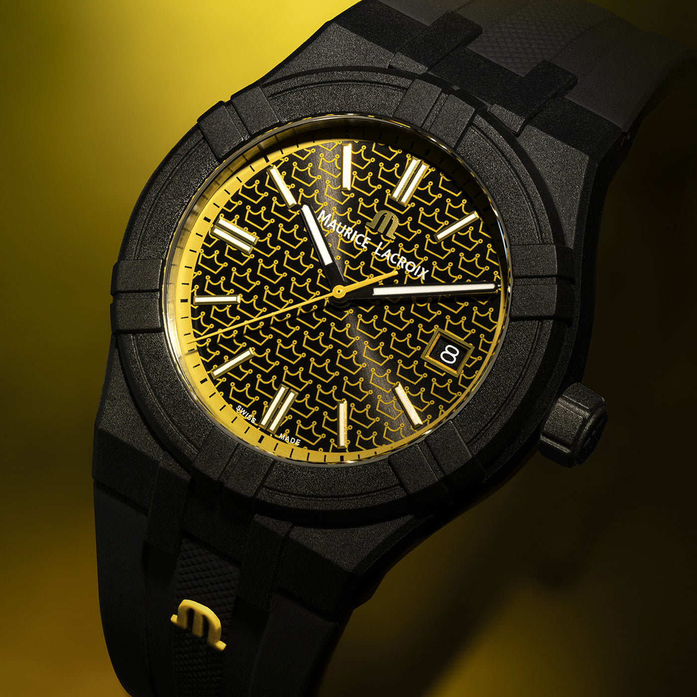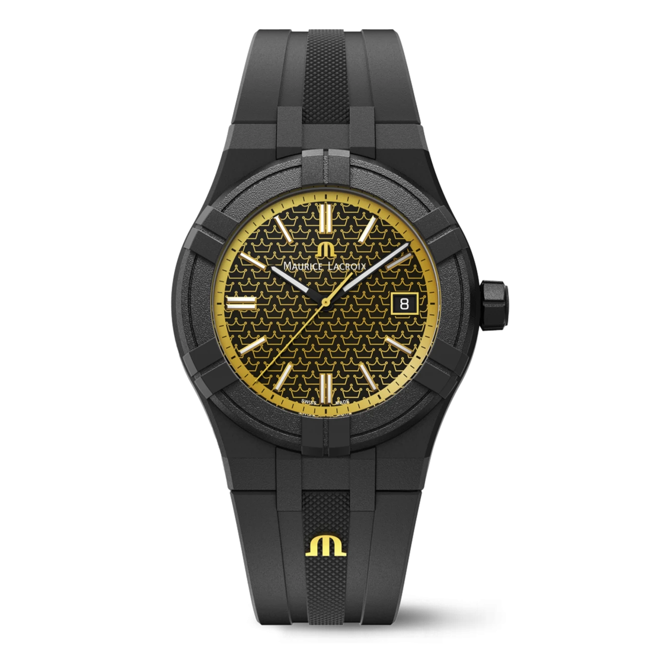 • BRACELET/STRAP: Black, rubber strap, featuring the Maurice Lacroix 'm' logo