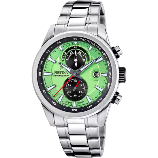 Festina Timeless Chronograph Gents Green Dial Stainless Steel Watch