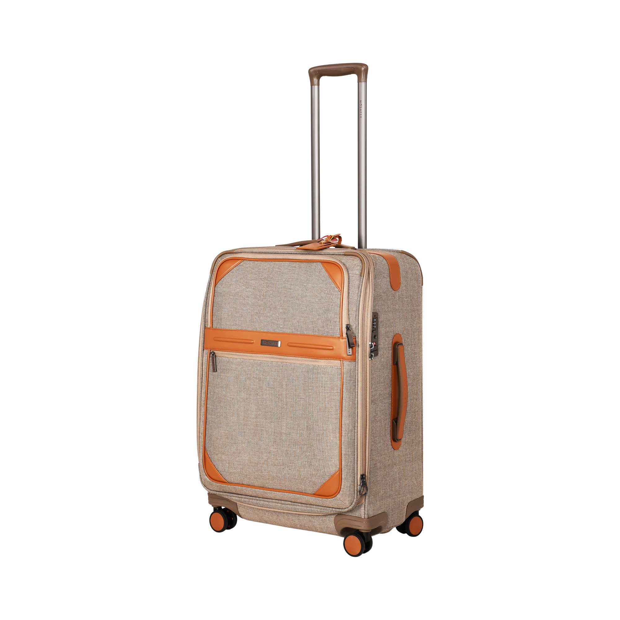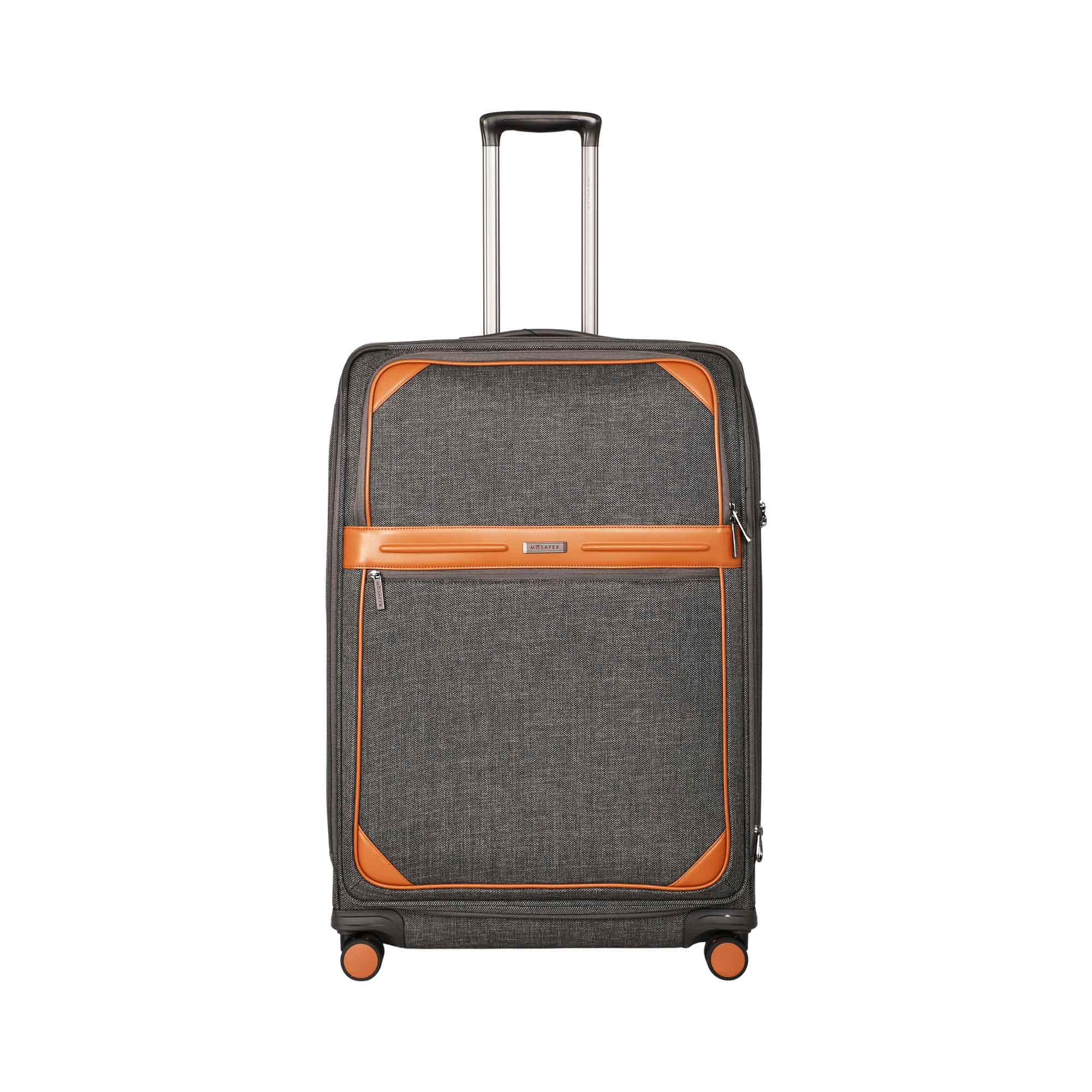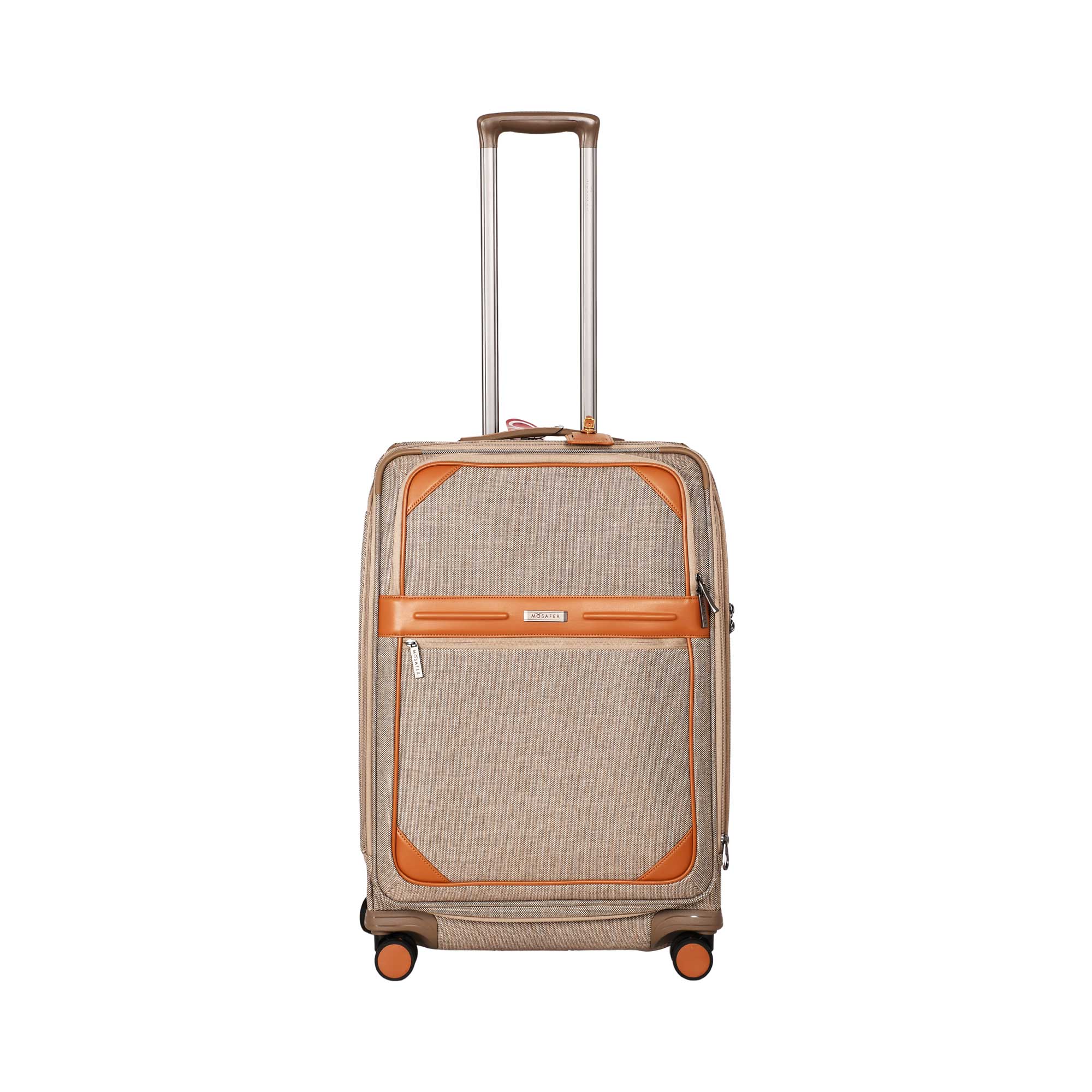 The Mosafer Elegant Soft Luggage combines style and functionality with its high-quality fabric surface complemented by durable PVC leather accents, offering both a sophisticated look and enhanced protection. Designed for smooth maneuverability, it features double 360-degree spinner wheels that allow effortless navigation through busy airports and tight spaces. Security is a priority with this luggage, equipped with a TSA-approved lock to keep your belongings safe while ensuring easy access for airport security checks. The Mosafer Elegant Soft Luggage is an excellent choice for frequent travelers seeking dependable, stylish, and secure luggage.