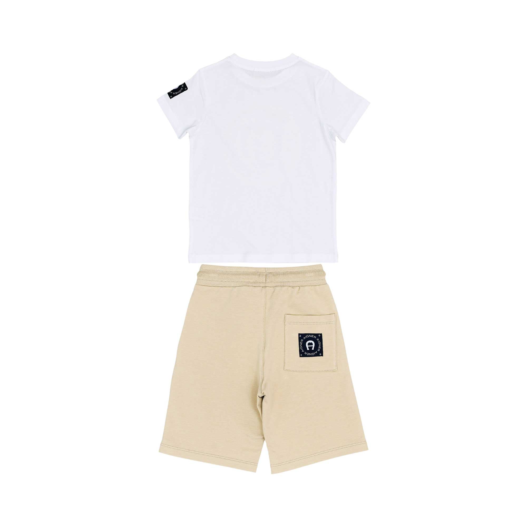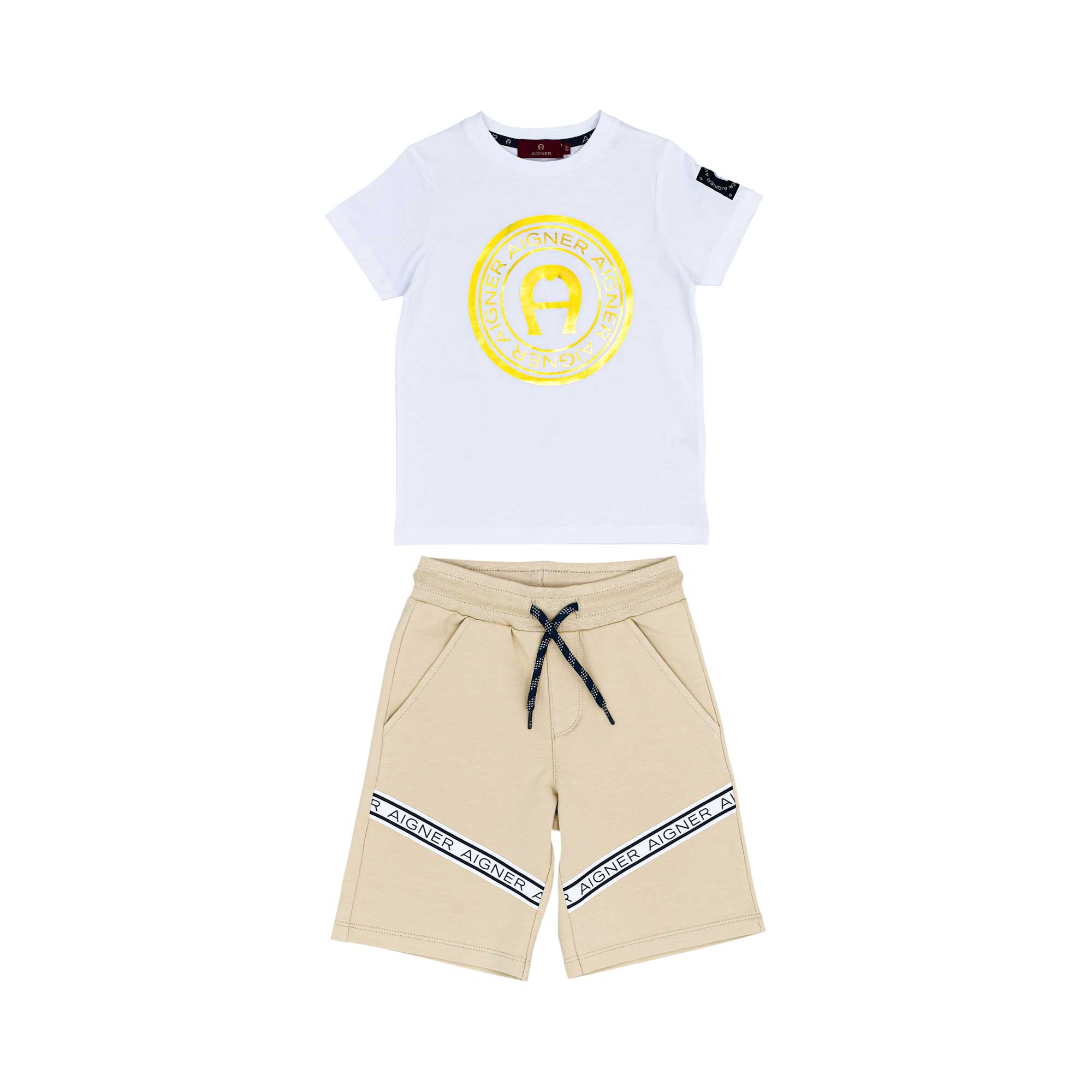Aigner Kids Boy's White & Beige Set of T-Shirt & Bermuda