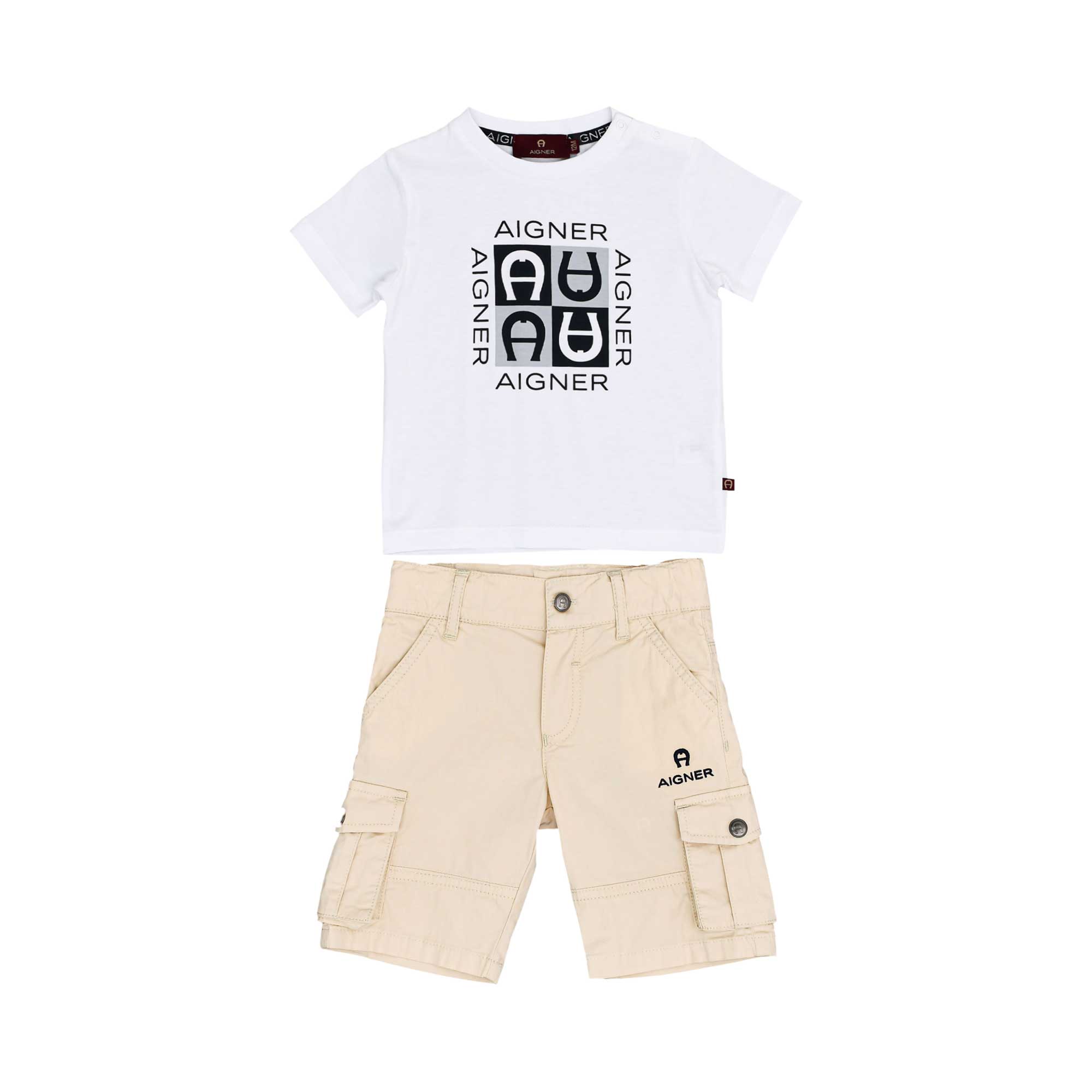 Aigner Kids Baby Boy's White & Beige Set of T-Shirt & Bermuda