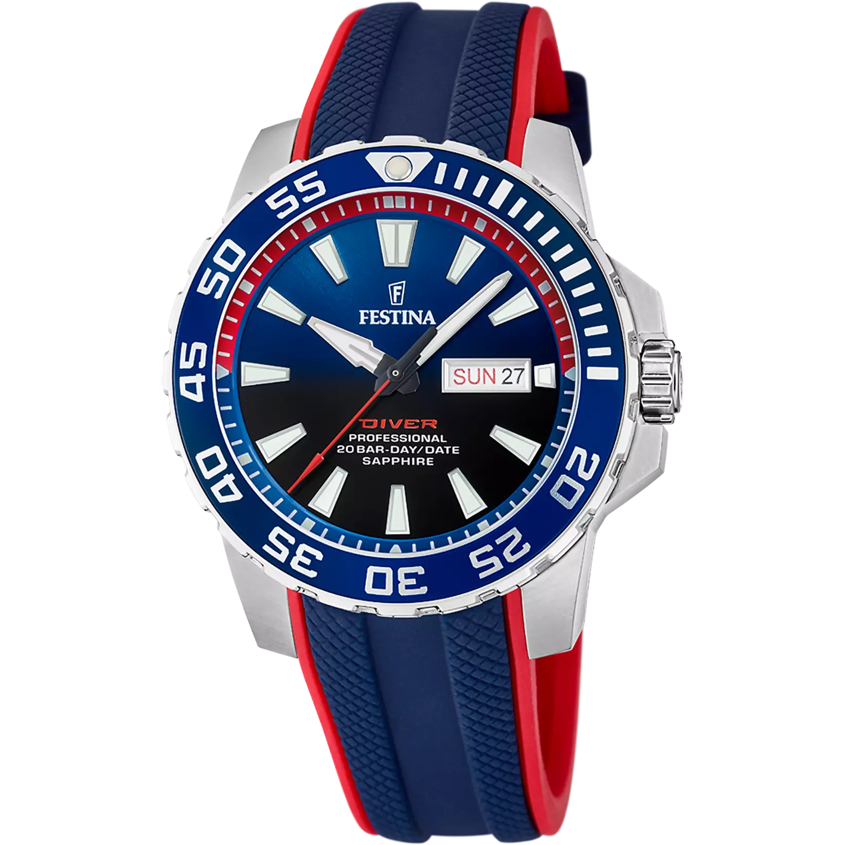 Festina Men's Blue Dial Blue & Red Rubber Strap Watch