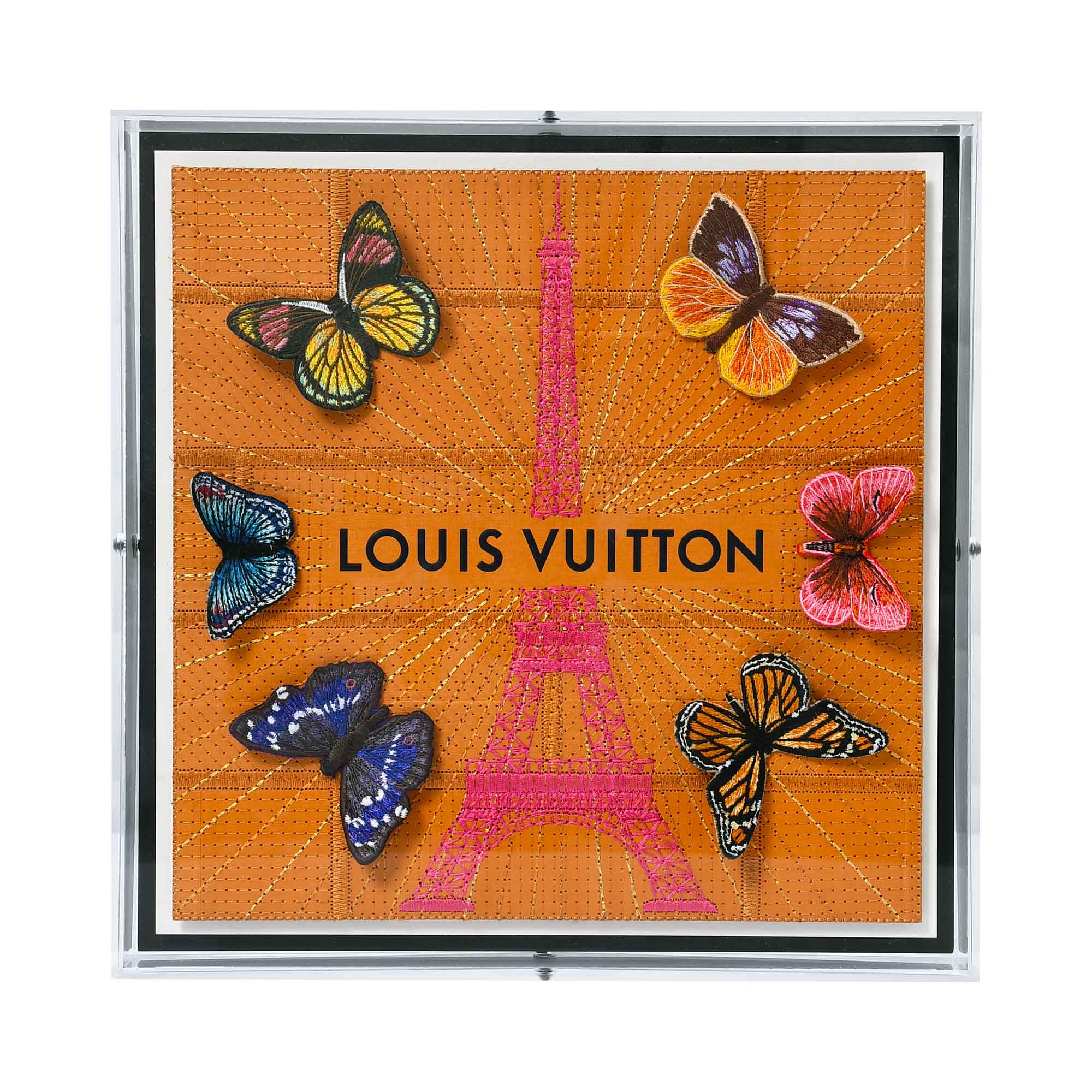 - Features vibrant embroidery and hand-stitched butterflies over iconic Louis Vuitton orange