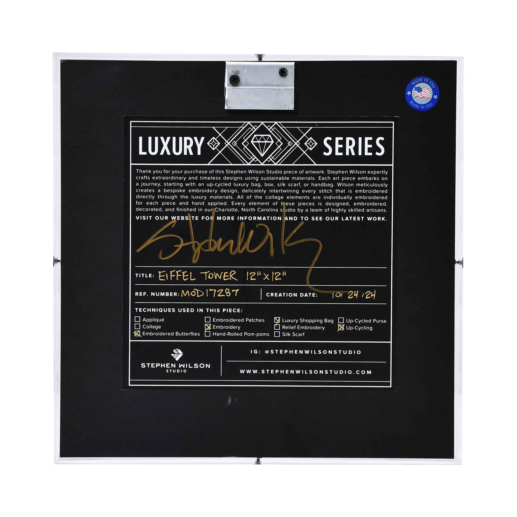 Stephen Wilson Studio Louis Vuitton Eiffel Tower Luxury Embroidered Artwork 12"×12"