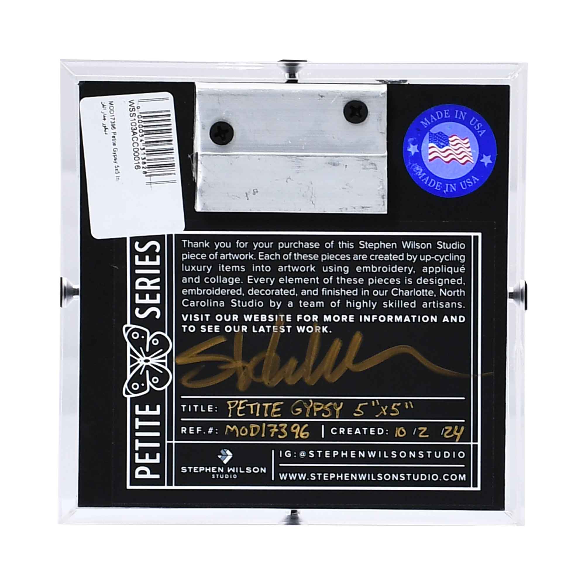 • Stephen Wilson Studio Dior Petite Gypsy Luxury Embroidered Butterfly Artwork measures 5×5 inches