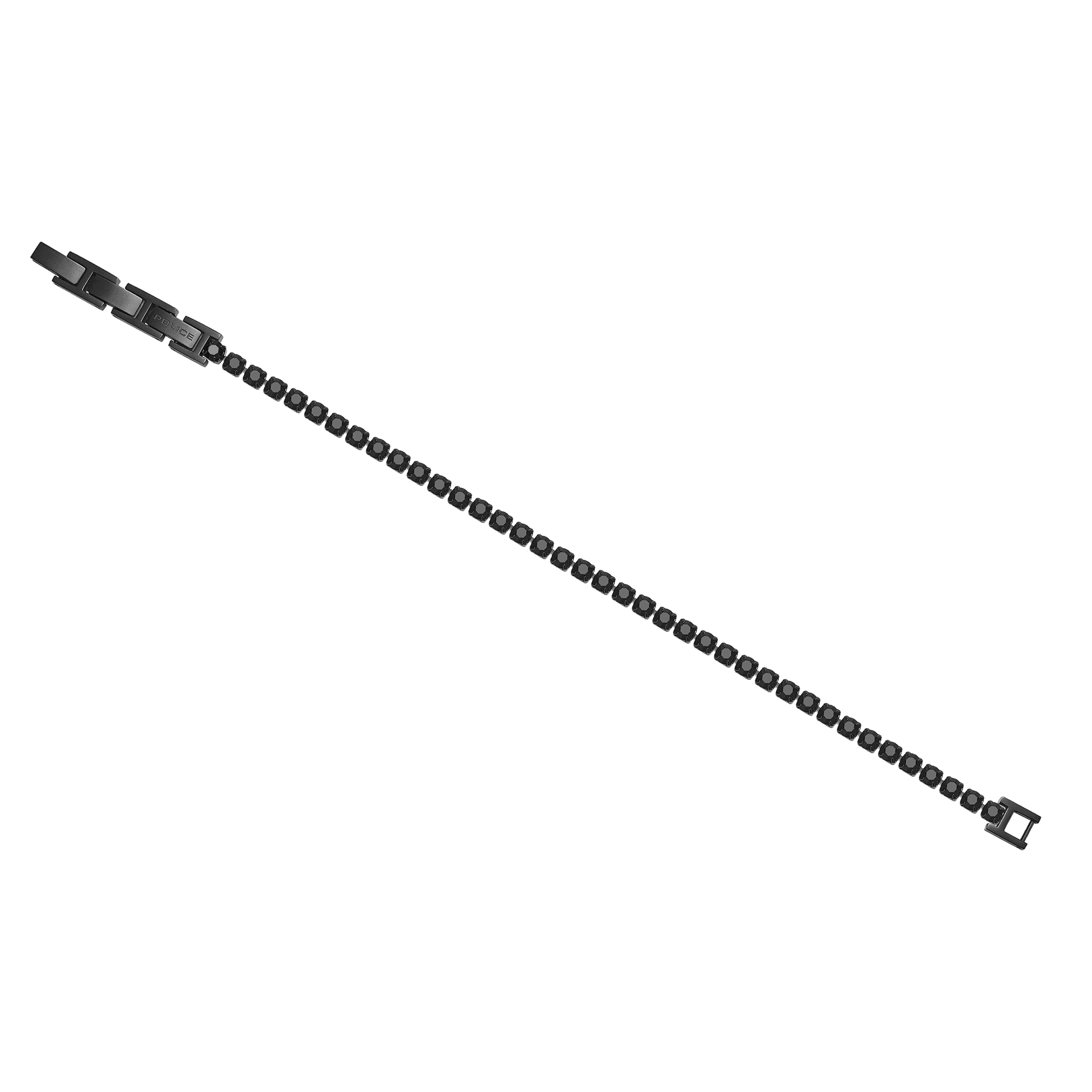 The bracelet features a continuous line of 4mm black crystals, each individually set to catch the light and create a subtle, yet striking, sparkle. The bracelet's main body is crafted from IP black metal, providing a durable and stylish dark finish that beautifully complements the crystals.
