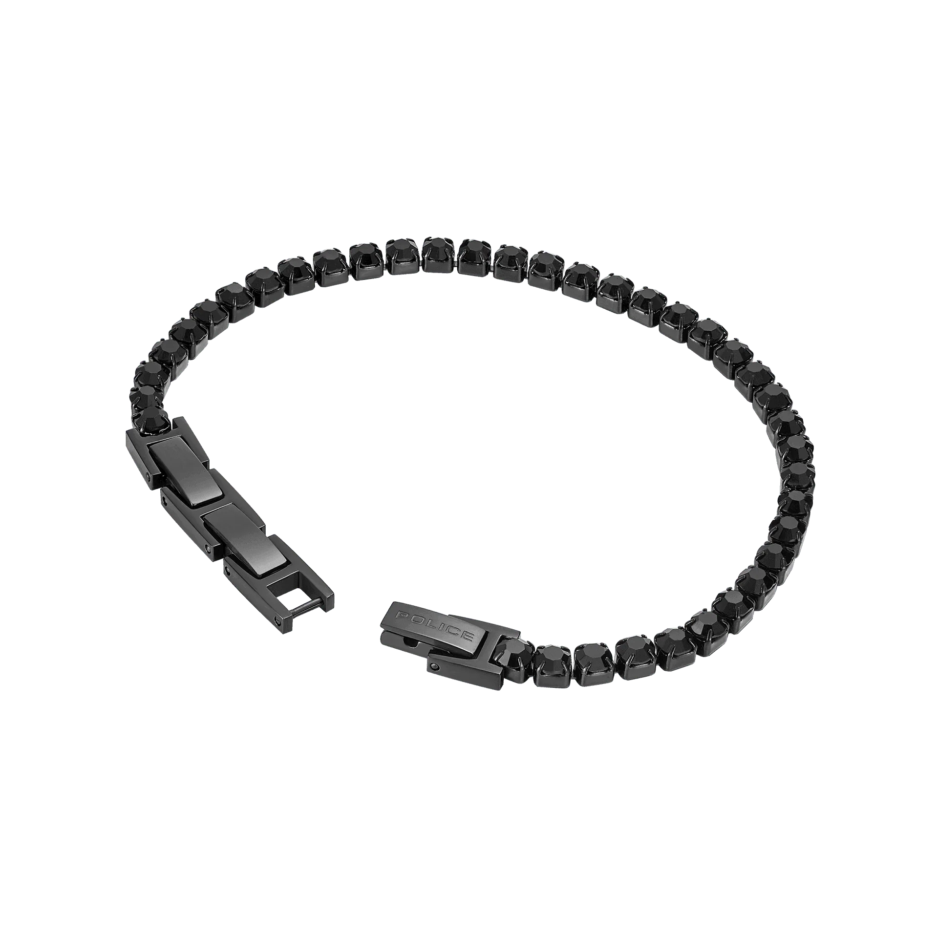 The secure and robust clasp is a standout design element. It is also made from IP black metal and has a brushed finish for a tactile contrast to the polished crystals. The clasp is elegantly branded with the "POLICE" logo, showcasing the authenticity and quality of the piece. The clasp mechanism is designed for ease of use while ensuring the bracelet stays securely on your wrist.