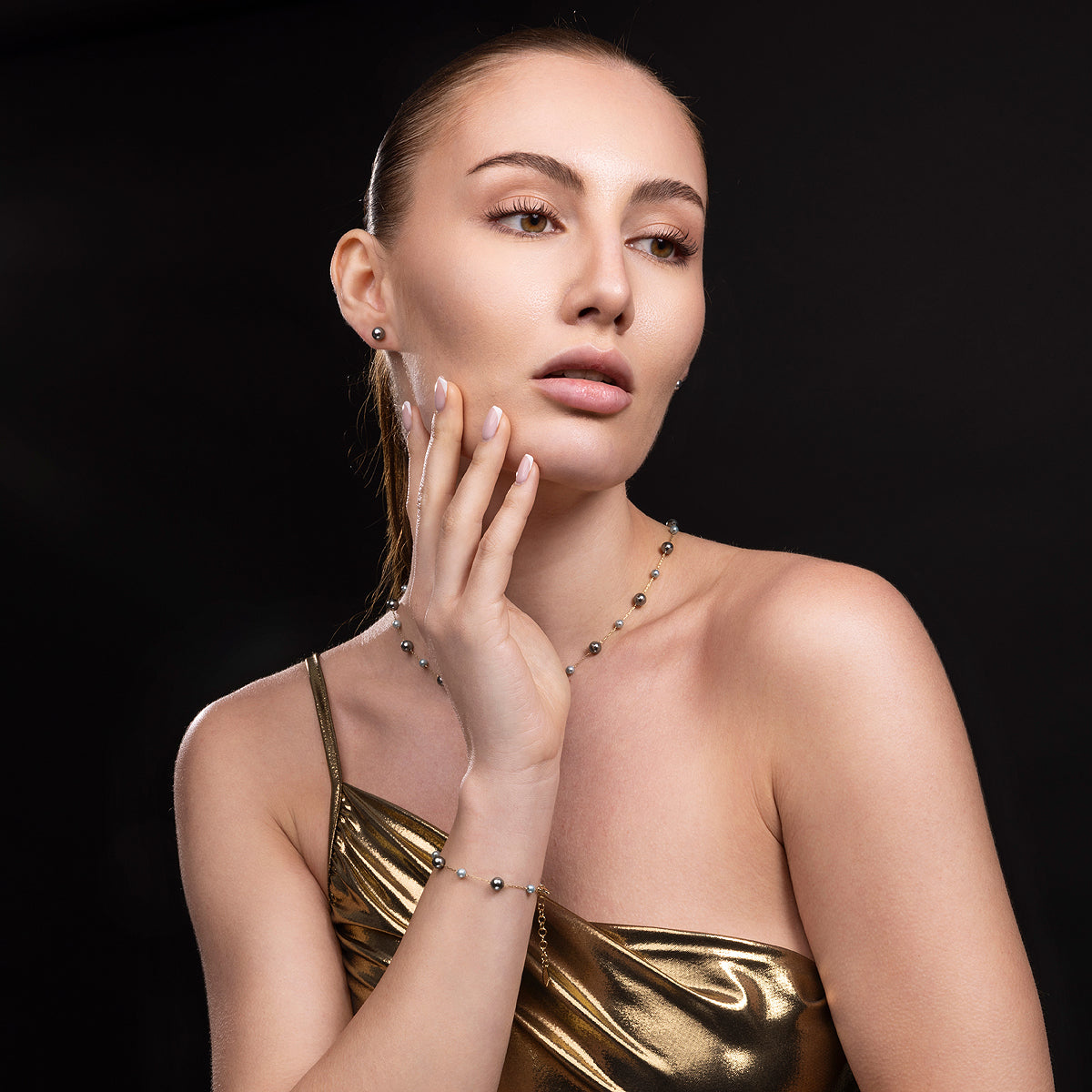- Color: Gold with Greyish Pearls