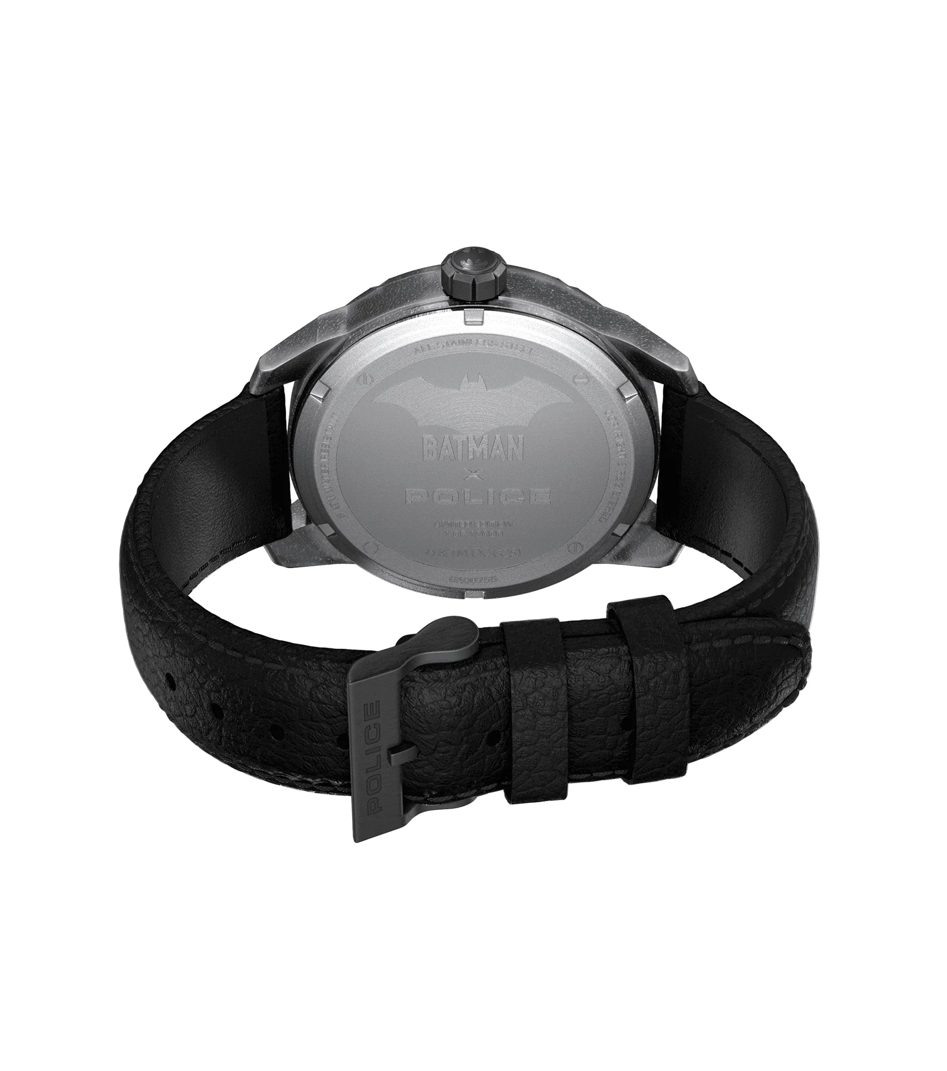 Police x Batman "The Bat" Limited Edition Gents Antique Gunmetal Black Leather Strap Watch