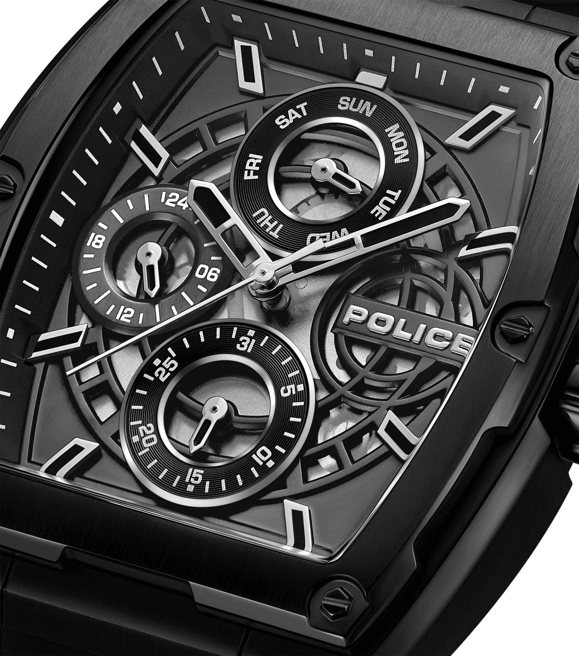 Police Creed Gents Transparent Charcoal Grey Dial Black Silicon Strap Watch