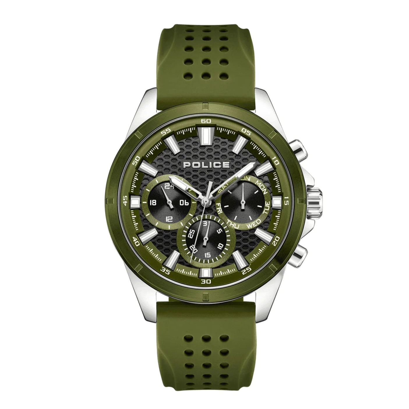 Police Motion Gents Multifunction Green Dial Silicon Strap Watch