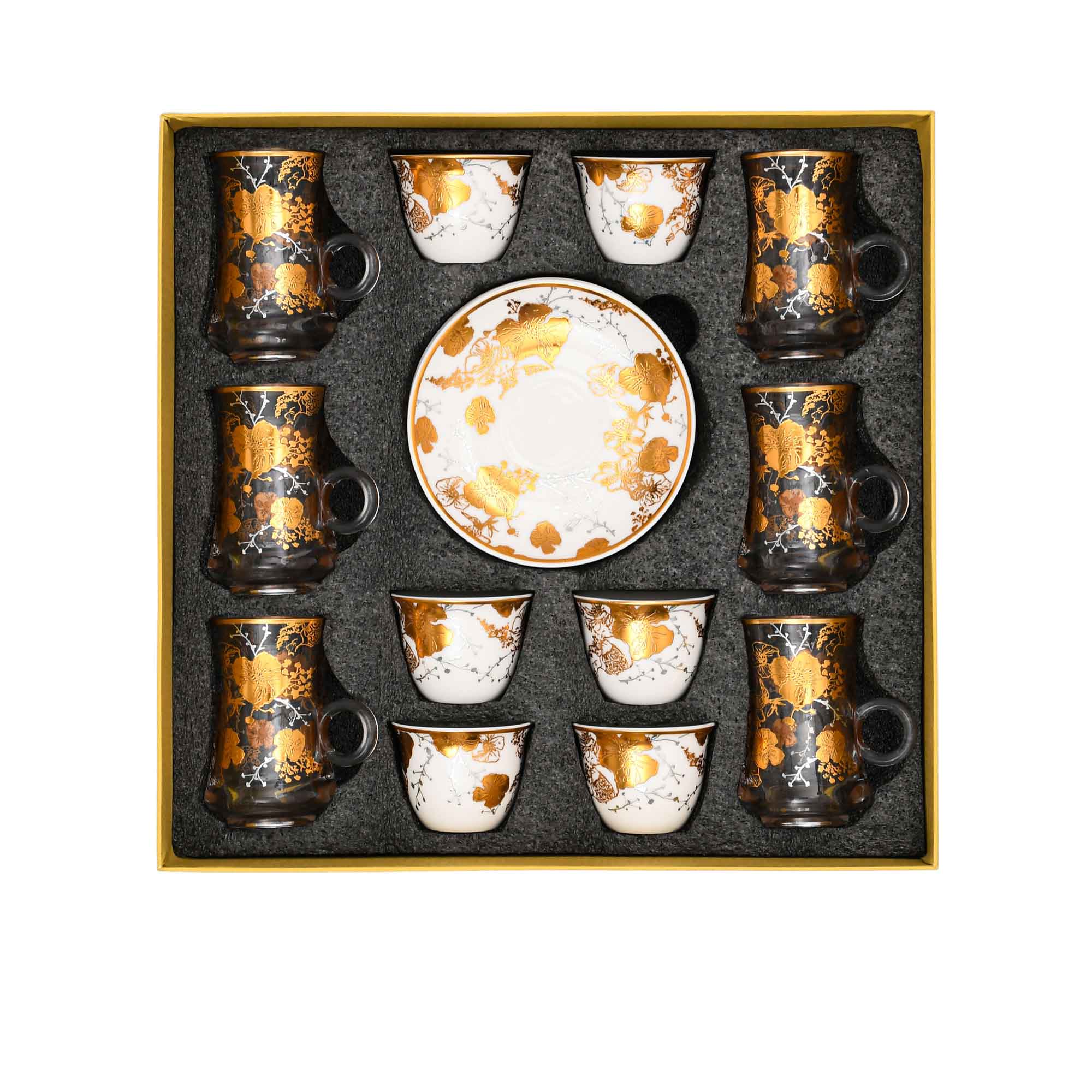 Casa Blu Floral Tea & Arabic Coffee Cups Set (18pc) - Gold Accents