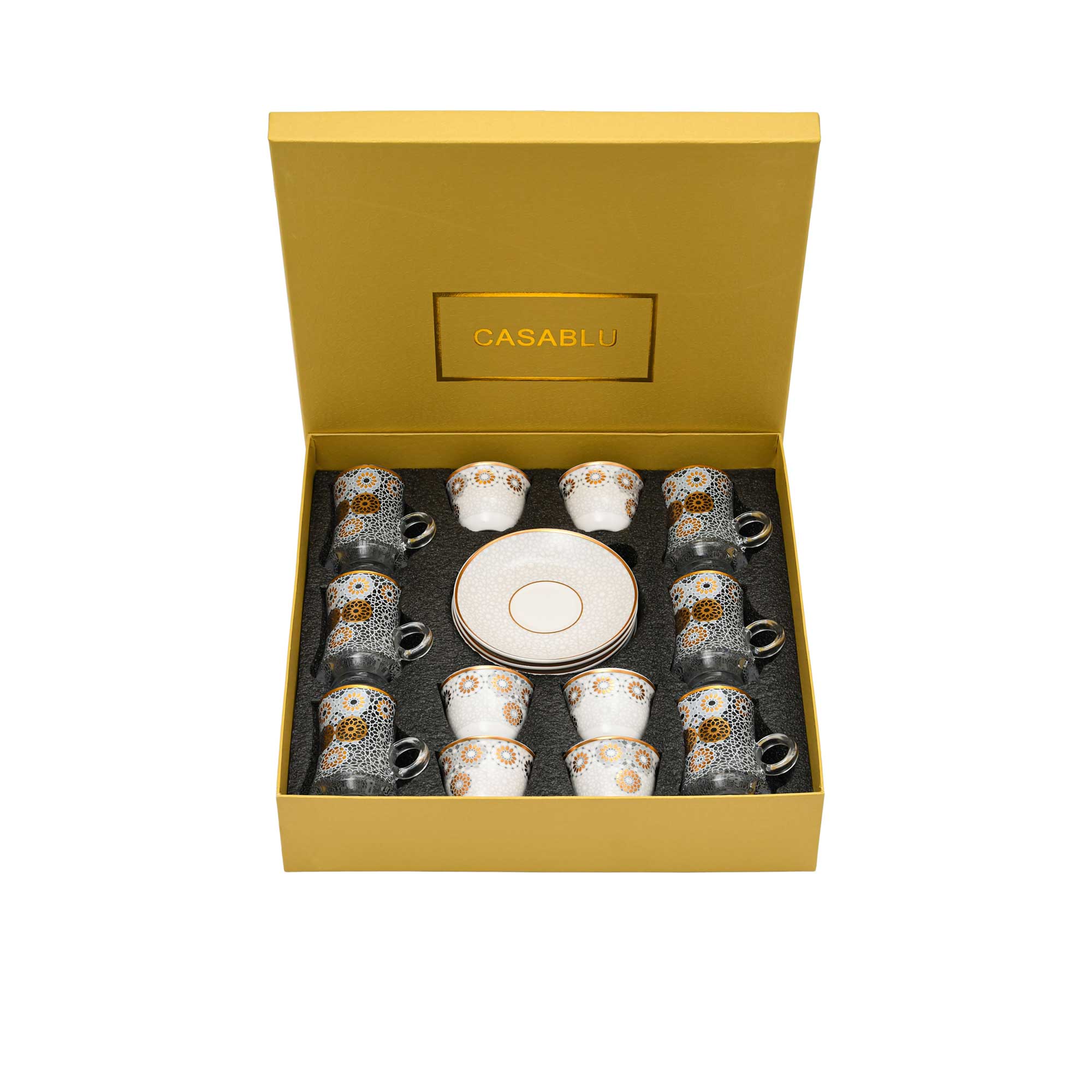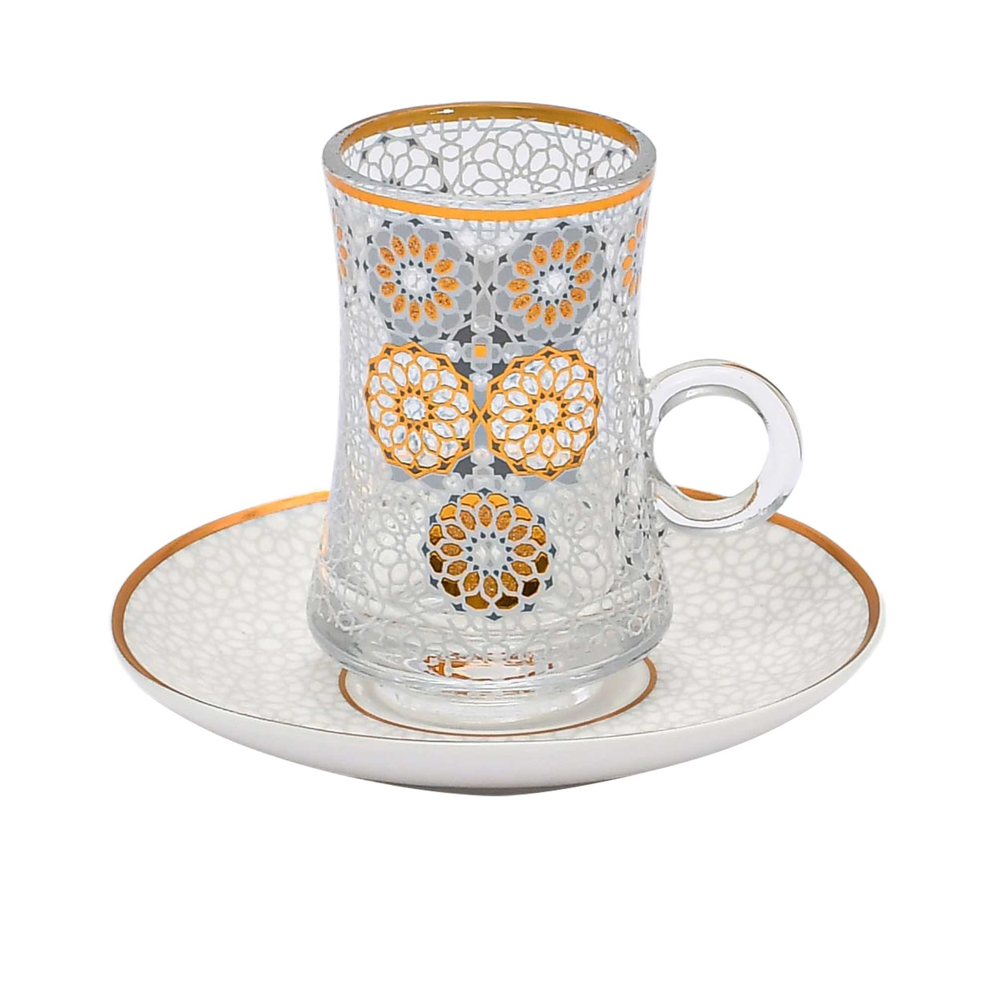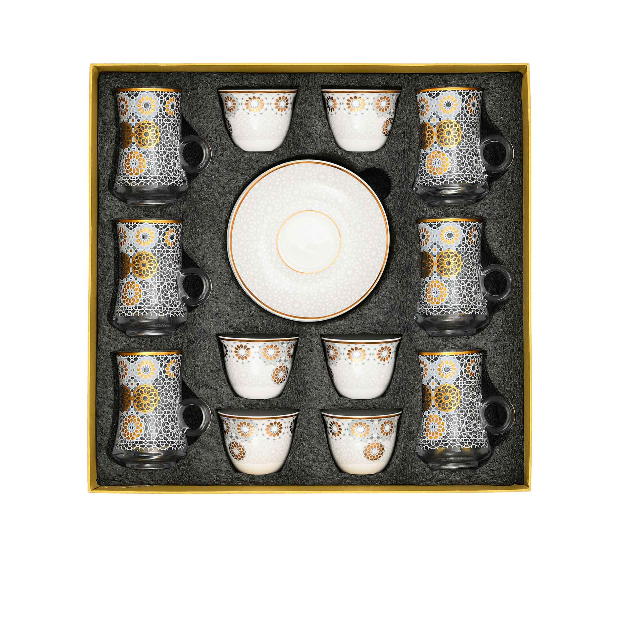 Casa Blu Geometric Tea & Qahwa Cup Set (18pc) - Gold Accents