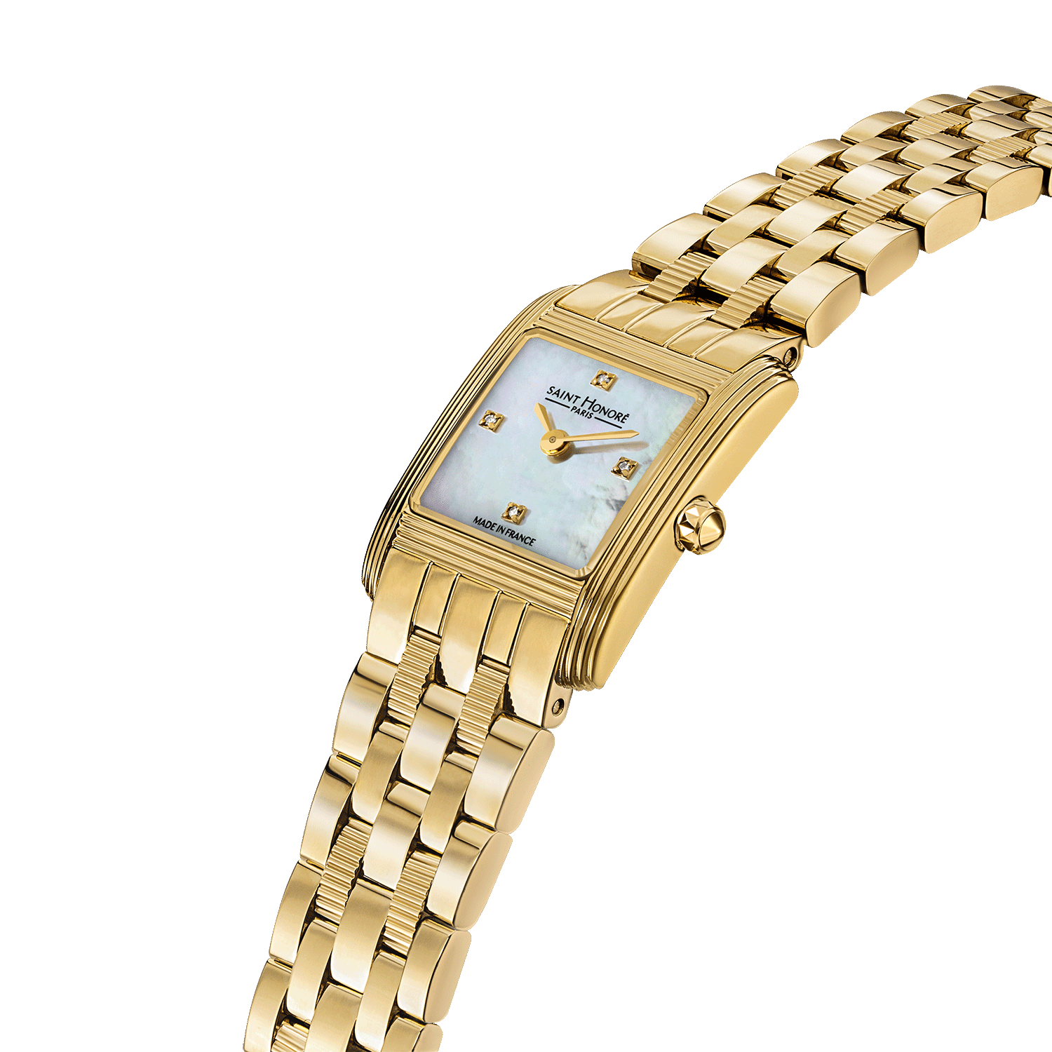 Saint Honore Paris Royale Mini Gold-Plated Watch with White Mother-of-Pearl Dial & Diamond Indexes