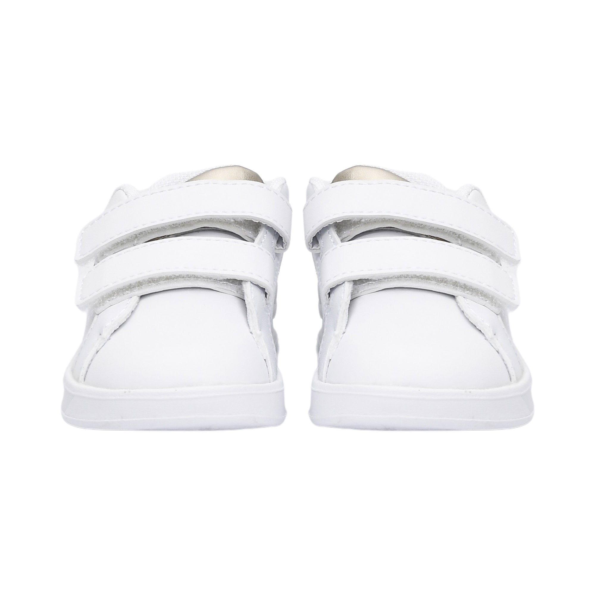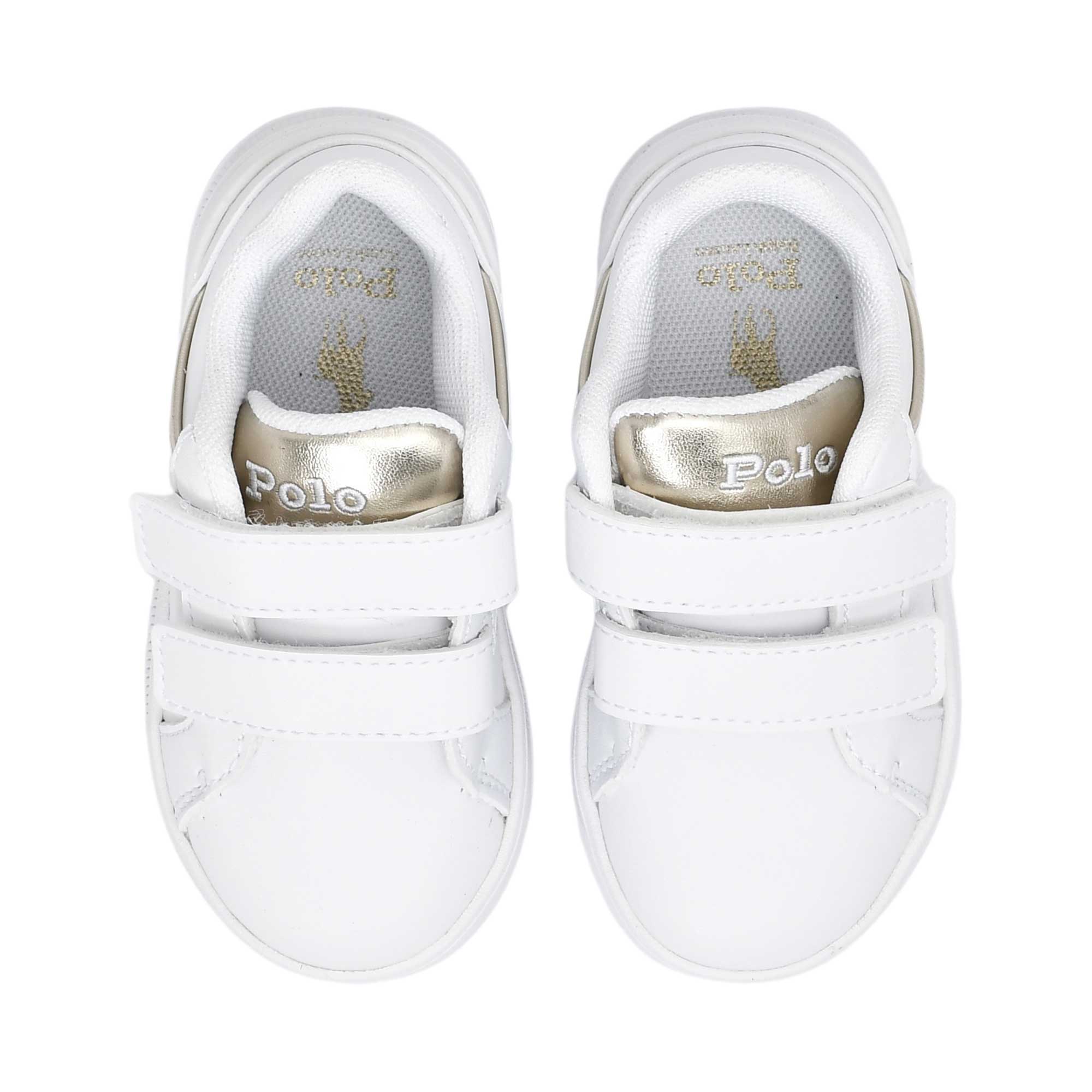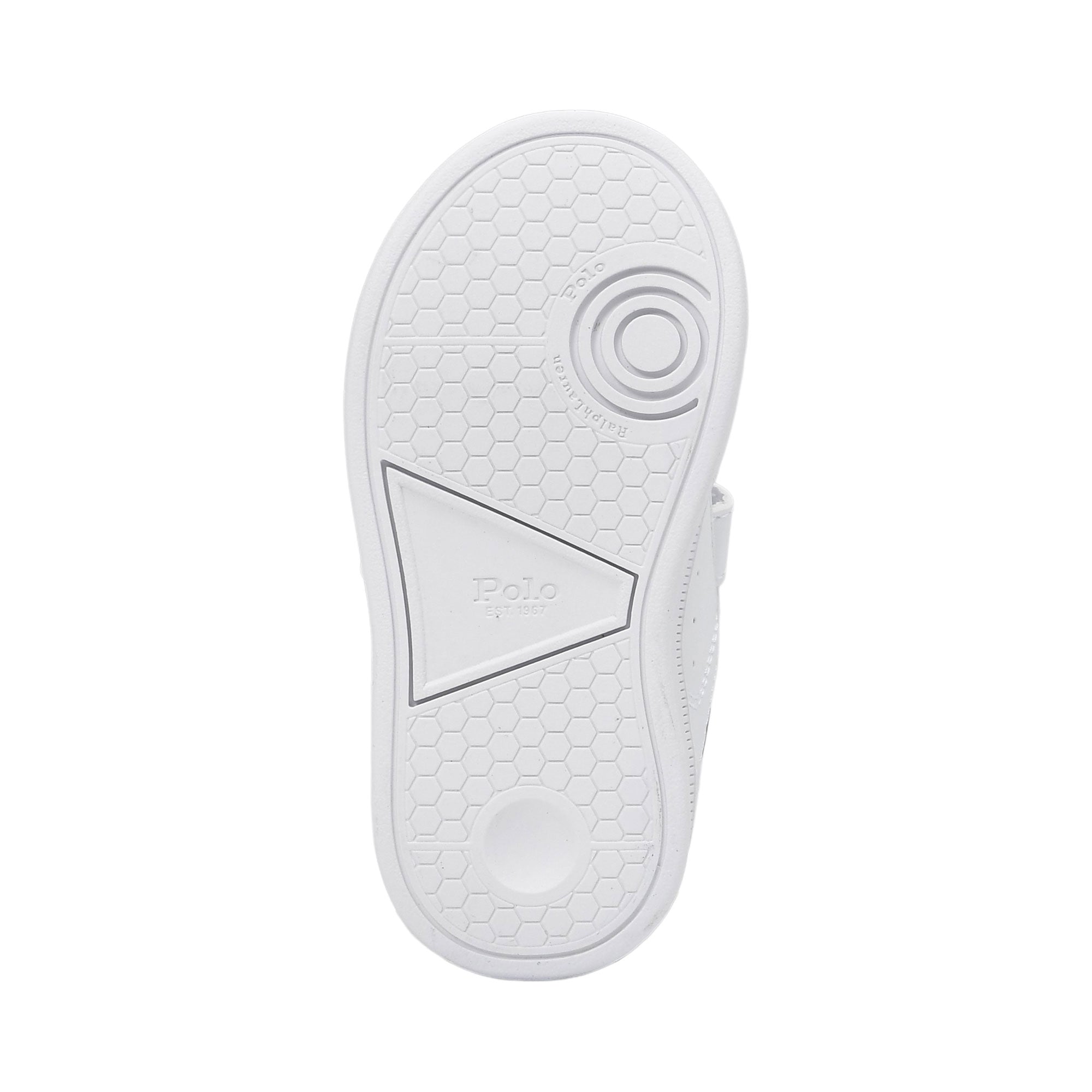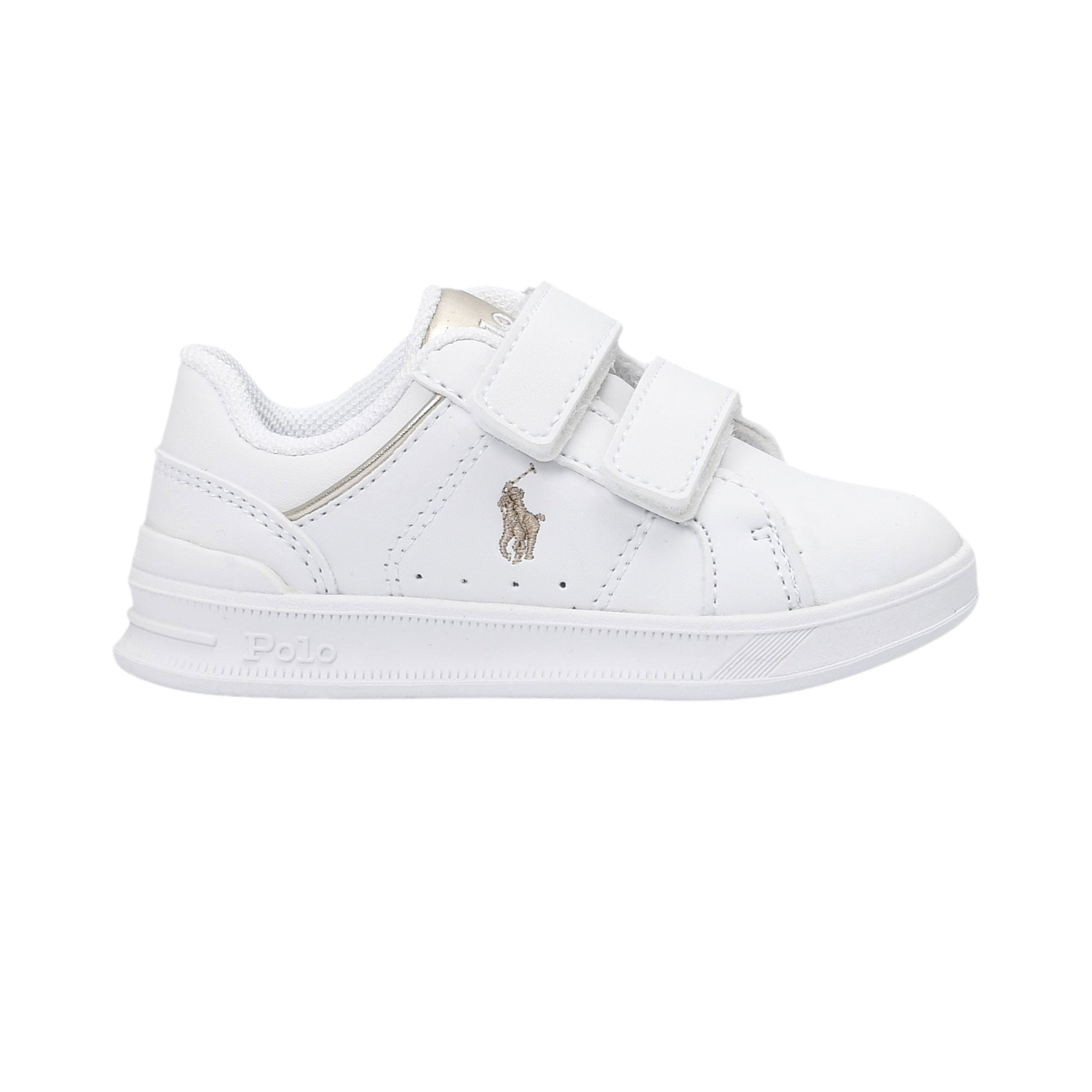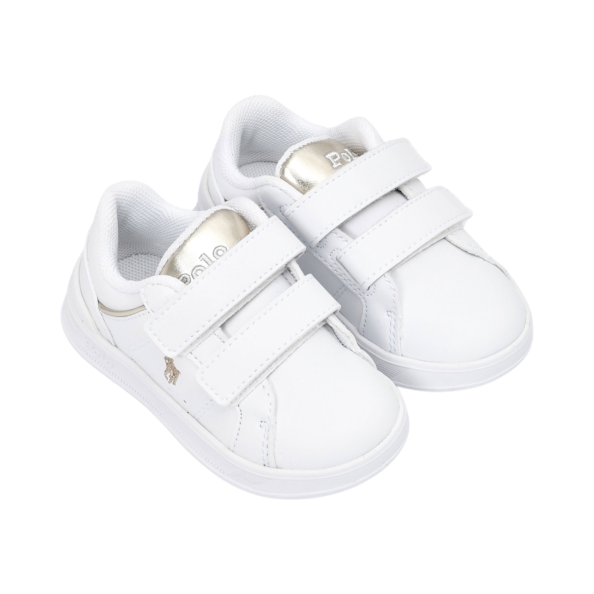 The Polo Ralph Lauren Kids White Sneakers are a stylish and practical choice for little ones on the go. Featuring a smooth white upper, these sneakers deliver a classic, versatile look that pairs easily with any outfit. Designed with active kids in mind, they include a cushioned footbed for all-day comfort and a durable rubber sole that offers reliable traction and support for every adventure. The convenient Velcro straps make it easy for kids to put the shoes on and take them off by themselves, while the iconic embroidered brand logo adds a signature Polo Ralph Lauren touch. Combining comfort, durability, and style, these sneakers are perfect for everyday wear.