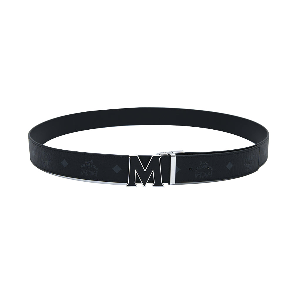 The MCM Leather Inlay Reversible M Belt Black Shiny Cobalt is a stylish and sophisticated accessory perfect for any occasion. This high-end belt features a reversible design, with cognac Visetos monogram coated canvas on one side and black nappa leather on the other. The epoxy-inlaid “M” buckle stands out against the flat silver-toned metal buckle and provides an eye-catching and unique style. The belt’s design also features a detachable buckle, so the belt can easily be tailored to fit a customized size. Ideal for both casual and formal occasions, this luxurious belt is perfect for those looking to make a statement without being too showy. With the MCM Leather Inlay Reversible M Belt, Black Shiny Cobalt, you’ll be sure to stand out in any crowd.