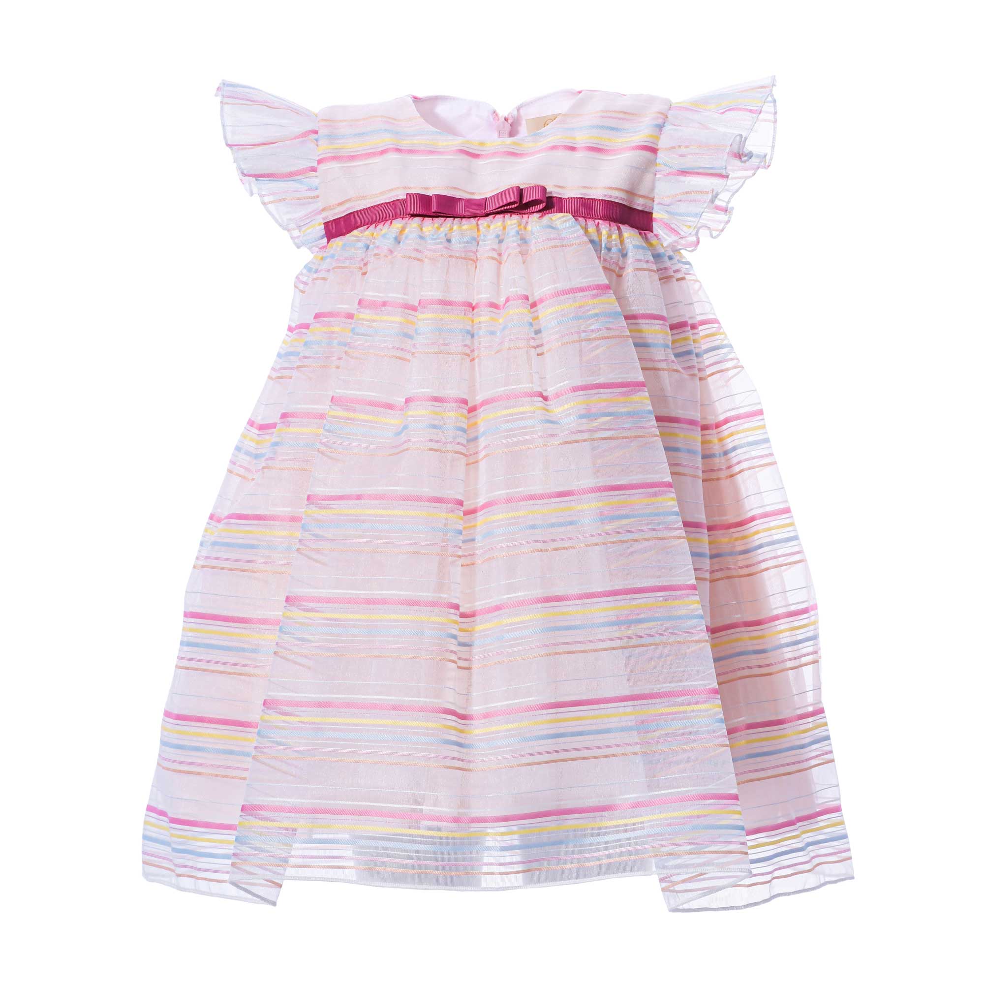 This Piccola Speranza Kids Baby Girl's Pink Dress is a perfect choice for your little one's special occasions. The dress features a round neckline, short frill sleeves, and a gathered skirt. The dress is decorated with multicolor stripes, giving it a fun and colorful look. It is made from a fine fabric and is lined for comfort. The back zip fastening ensures a snug fit, while a dark pink belt detail with a bow around the waist adds a sweet touch. Your little girl will look adorable in this dress, making it a must-have in her wardrobe. SPECIFICATIONS: