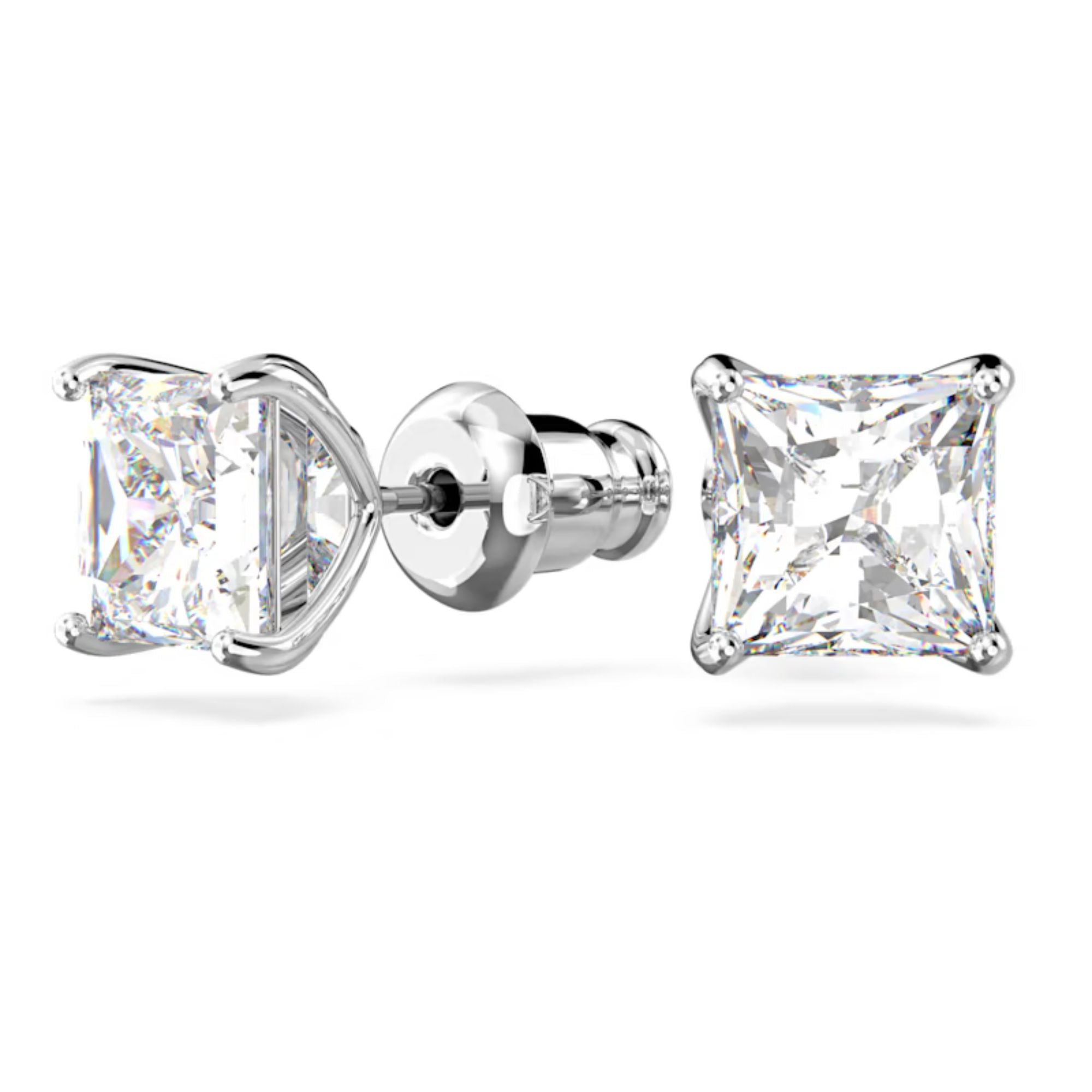 A Swarovski jewelry collection would be incomplete without these classic princess-cut stud earrings. This stunning pair of earrings is set with clear crystals and plated in rhodium. You'll wear them again and again because they're a timeless keepsake that champions an ultra-modern unisex aesthetic.