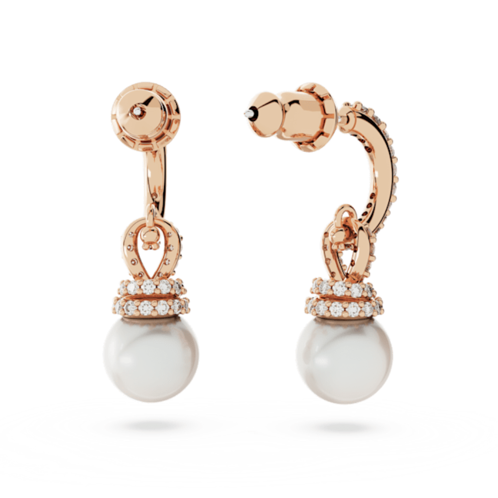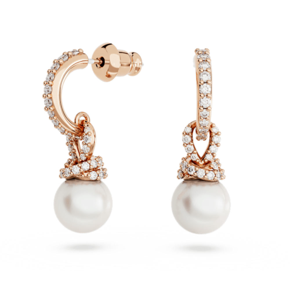 For this beautiful design from the Originally family, classic pearl earrings have been reimagined with Swarovski's savoir-faire. The result is a modern pair of earrings featuring rose gold-tone plated hoops and twists of shimmering pavé holding a luminous Swarovski Crystal Pearl. Choose this pair for classic glamour and a subtle glow. Size: 2.5 x 0.8 cm, Weight (individual piece): 2 g