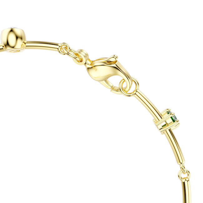 The Swarovski Constella Bracelet Mixed Cuts Green Gold-Tone Plated is a stunning jewelry piece designed to effortlessly wrap your wrist in radiant light. This exquisitely crafted bracelet features a gold-tone plated silhouette, adorned with articulated links that provide both comfort and elegant movement. Each link is carefully set with a variety of sparkling crystals and Swarovski Zirconia in an enchanting blend of clear and green hues, showcased in both prong and bezel settings for visual intrigue and brilliance. The thoughtful inclusion of a lobster clasp ensures secure fastening, while an additional extender offers versatility for different wrist sizes or styling preferences. Vibrant, luxurious, and full of luminous distinction, the Constella bracelet is the perfect accessory to elevate both everyday looks and special occasions.